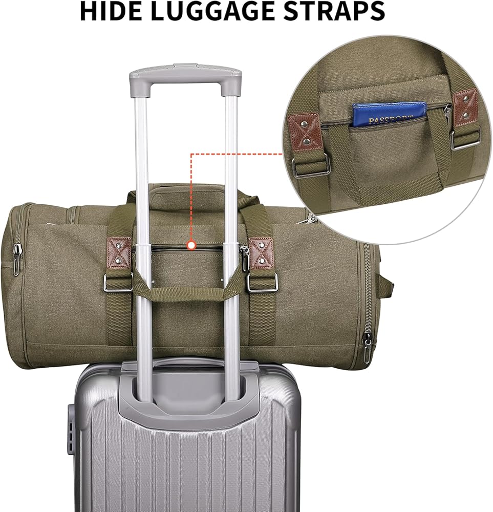 طريقة حمل مريحة: تأتي حقيبة السفر هذه بمقبض خياطة دائري وأحزمة كتف مبطنة قابلة للتعديل والفصل. تحتوي على 3 طرق للحمل: حقيبة يد، حقيبة كتف أو حقيبة كروس. يأتي الجزء الخلفي من حقيبة الأمتعة أيضًا مع حزام أمتعة مخفي، مما يسمح لك بوضع حقيبة السفر الخاصة بك على أمتعتك وتحرير يديك.