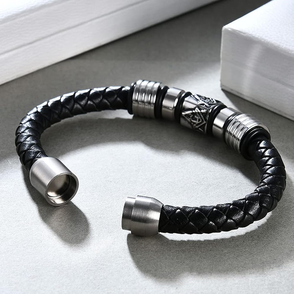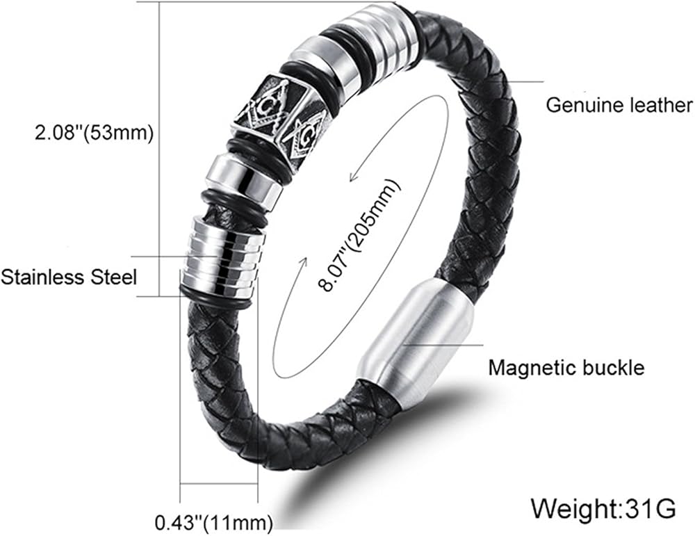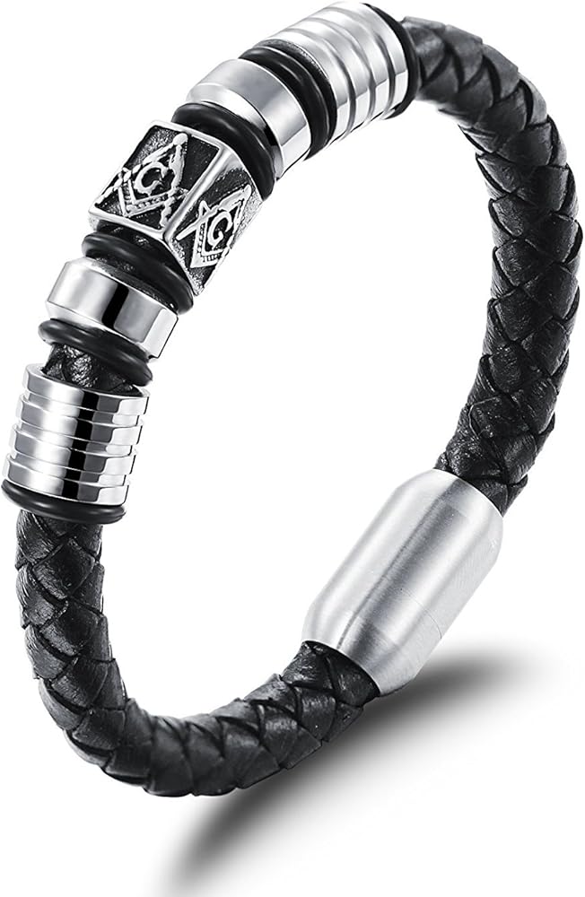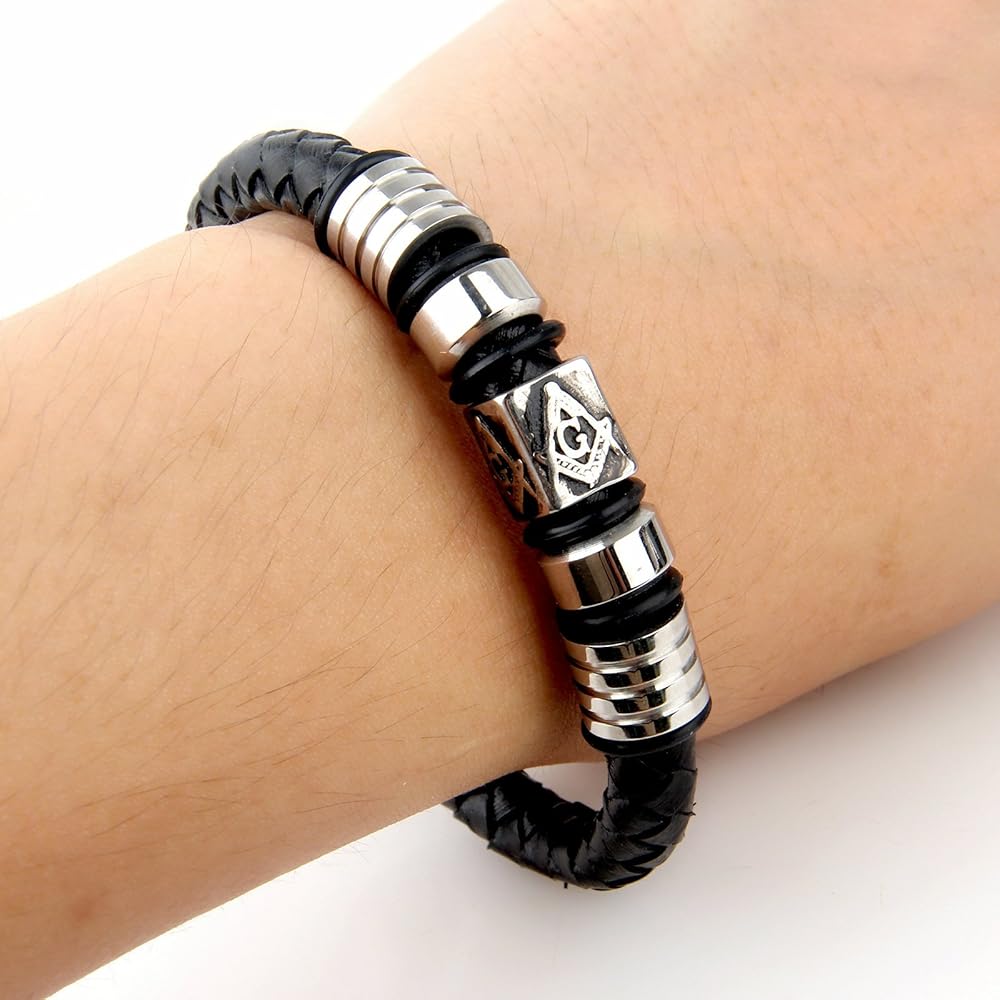 سوار رجالي من الفولاذ المقاوم للصدأ من الجلد الماسوني الماسوني مضفر مكتنزة