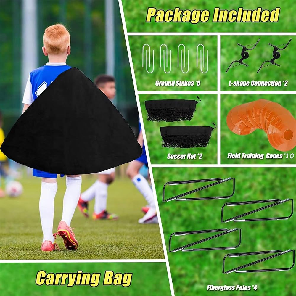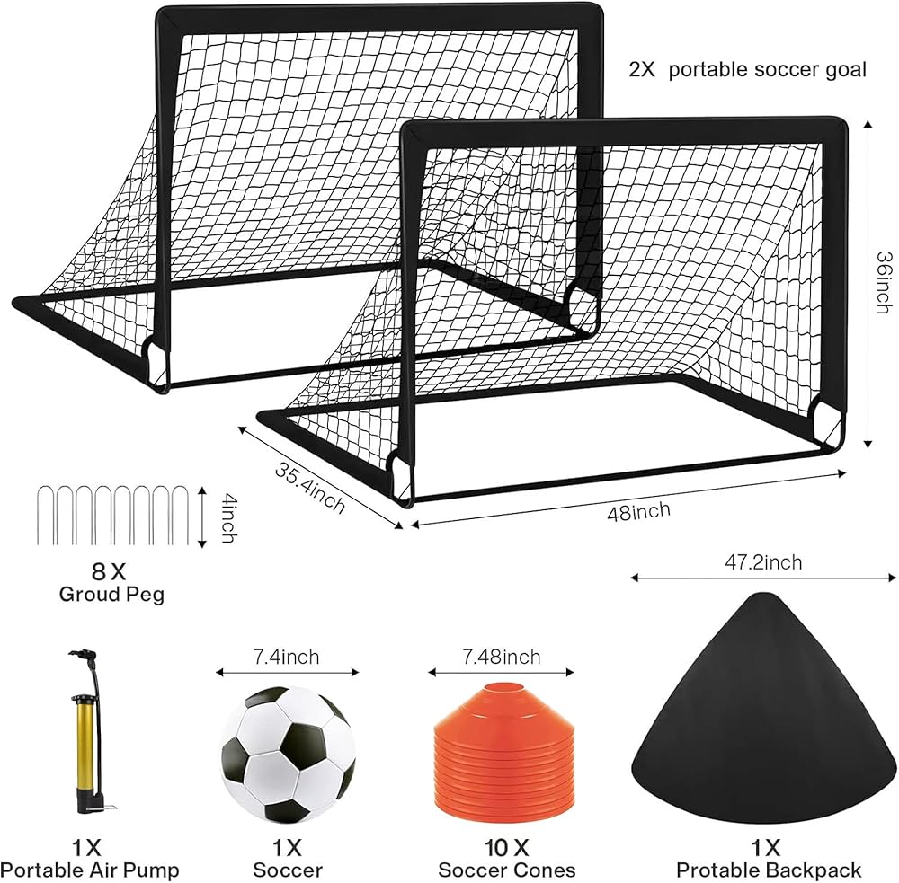 ⚽【مجموعة أهداف كرة القدم】مجموعة شبكة كرة القدم هي مجموعة كرة القدم الأكثر اكتمالاً في السوق. تحتوي على هدفين لكرة القدم للمبتدئين سهل الطي، وكرة قدم واحدة بحجم قياسي، ومضخة نفخ واحدة، و10 مخاريط، و8 مسامير أرضية شديدة التحمل على شكل حرف U وحقيبة حمل واحدة. مجموعة كرة قدم واحدة لكل ما تحتاجه لتتطور إلى رياضي صغير، مما يسمح لعائلتك بالحصول على شبكتهم "الخاصة" لتسجيل هدف!