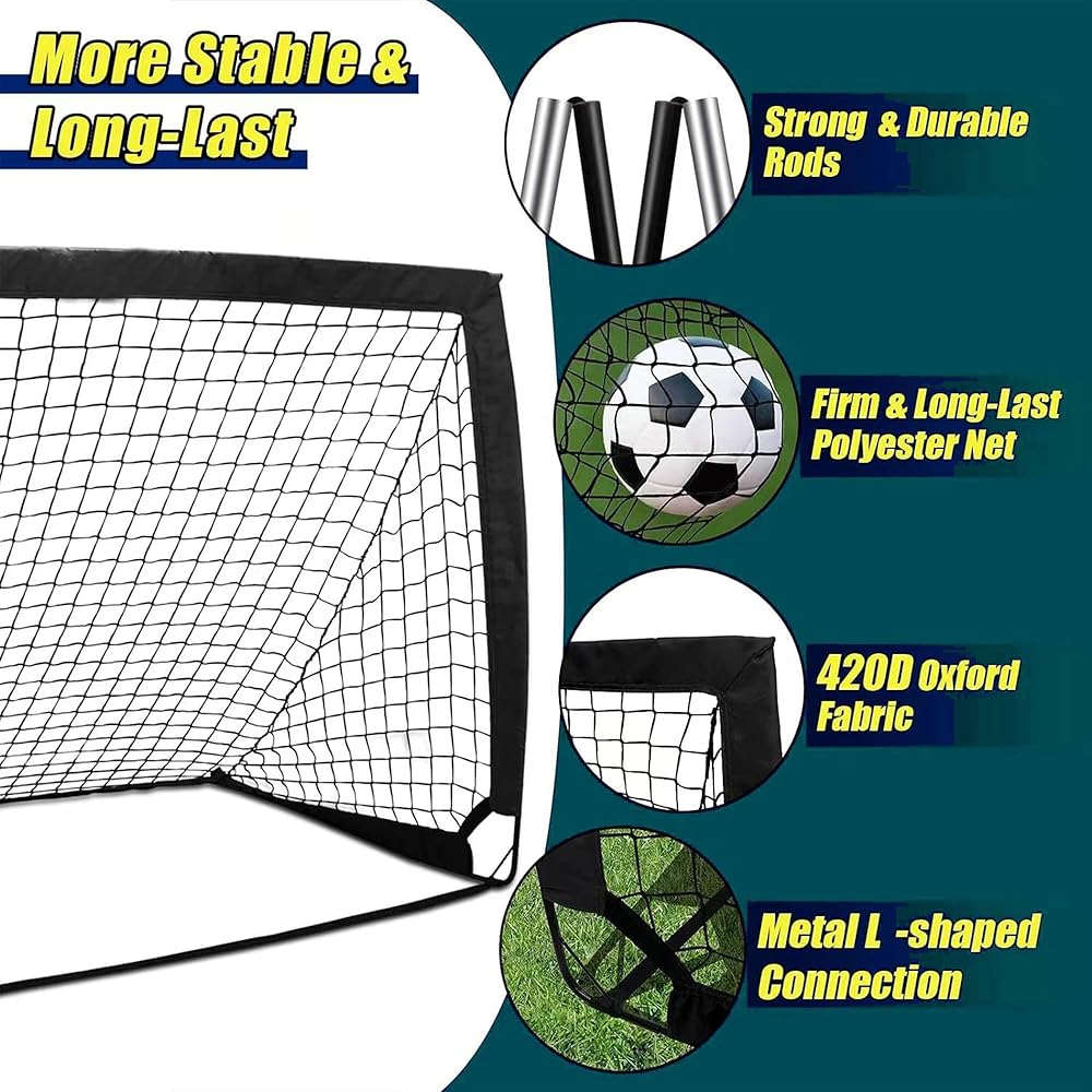 ⚽【الجودة والمتانة】مجموعتان من أهداف كرة القدم المحمولة مقاس 4 × 3 بوصات مصنوعة من قماش أكسفورد المتين وأعمدة من الألياف الزجاجية مقاس 9.5 مم مع صلابة جيدة ومقاومة للتآكل. كرة القدم ذات الحجم القياسي تقارن مع العديد من العلامات التجارية الكبرى لكرة القدم، مصنوعة من مادة TPU المتينة، مصممة لمقاومة التآكل وتدوم لفترة أطول. رائعة للتدريب والمرح!