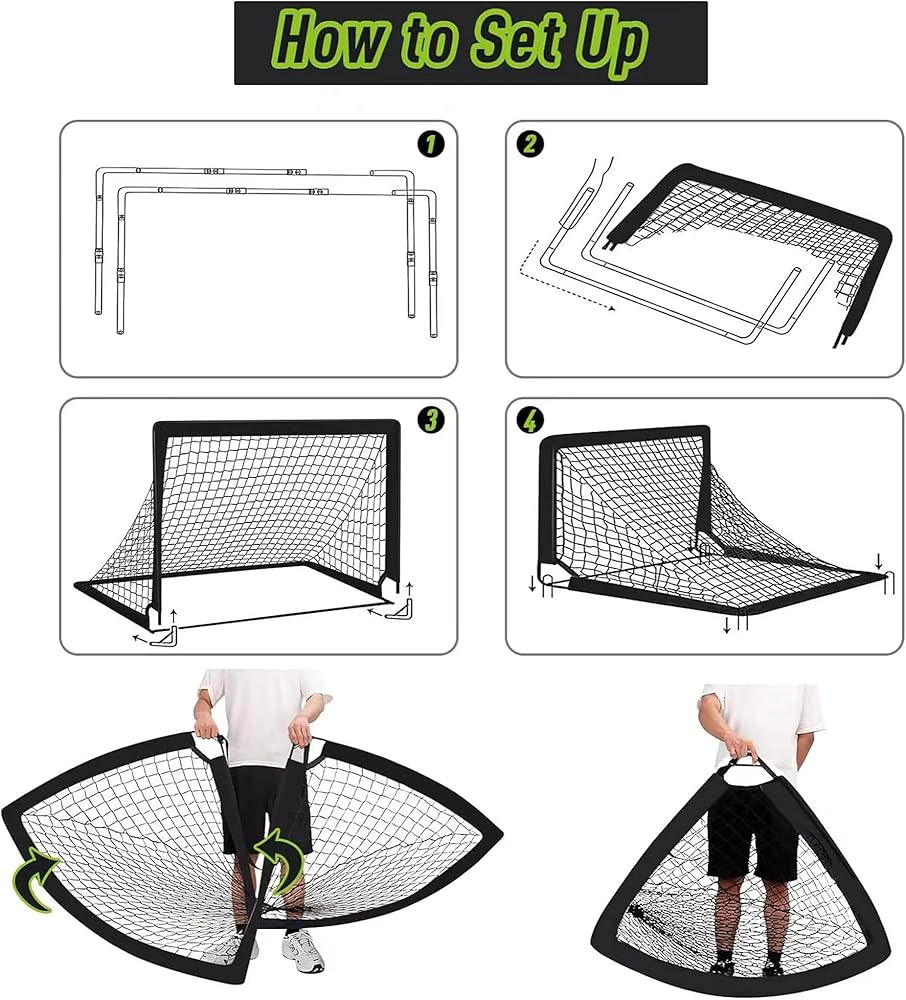 ⚽【محمول وقابل للطي】مع حقيبة حمل لهدف كرة القدم الخاص بنا. يمكنك الحصول على شباك كرة القدم في ثوانٍ بخطوتين: ضع الأعمدة في غطاء القماش، وقم بتوصيلها بموصلات على شكل حرف L. ويمكن أيضًا طيها في مثلث متساوي الساقين بسرعة دون إزالة القضبان من شبكة كرة القدم نفسها، مما يسمح بإعداد سريع، وسهولة الطي، والرمي على الكتف، والانطلاق!