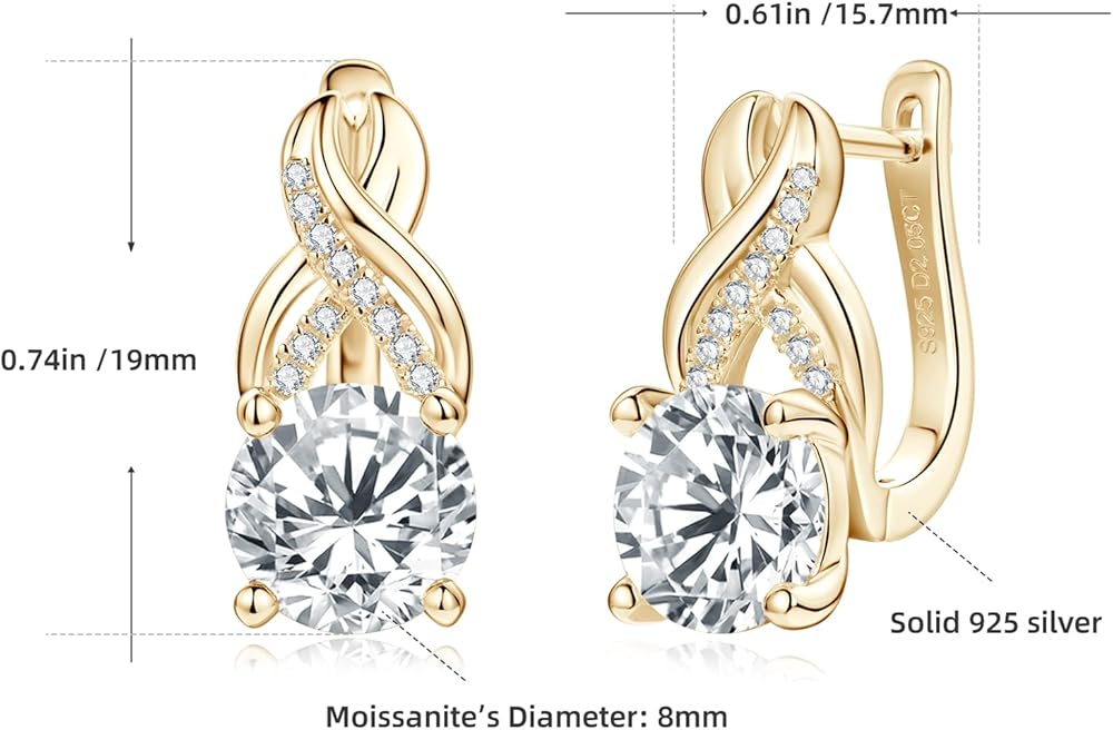EARRING SPECIFICATION: Each Pair of the Moissanite Earrings are made of one 2 carat 8mm round cut moissanite diamond, total 4 CT. Our selection is crafted to make each of your purchases an enjoyable and memorable experience.