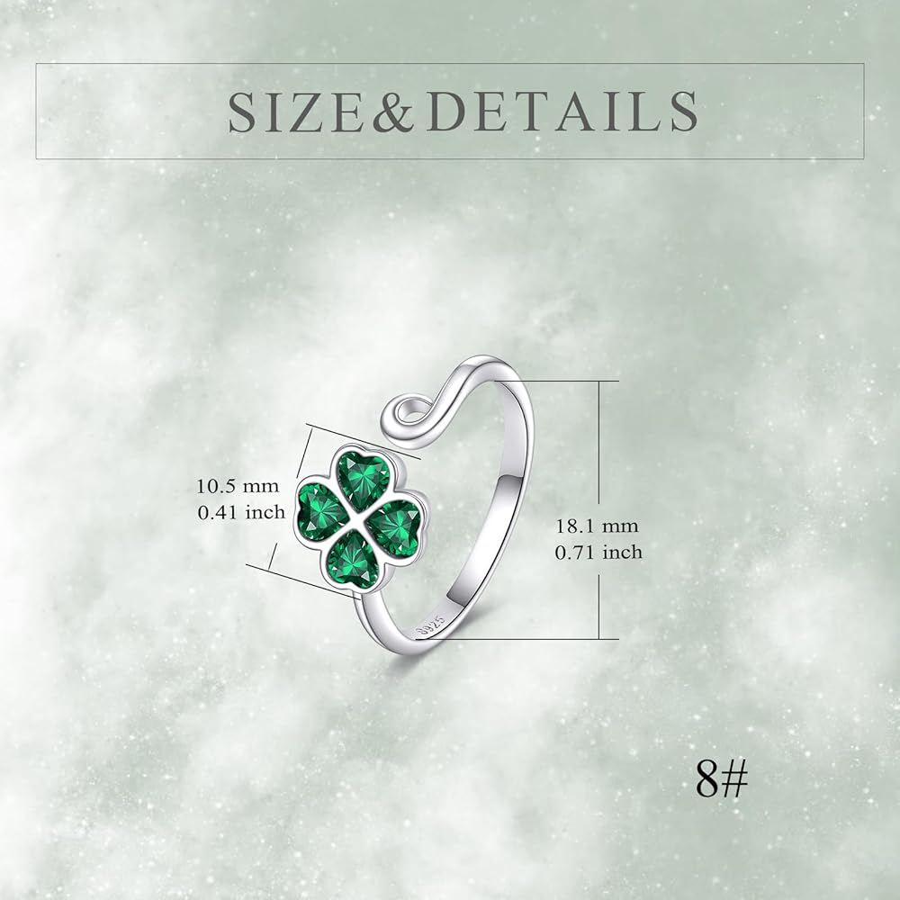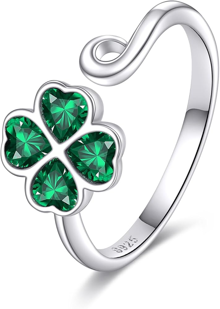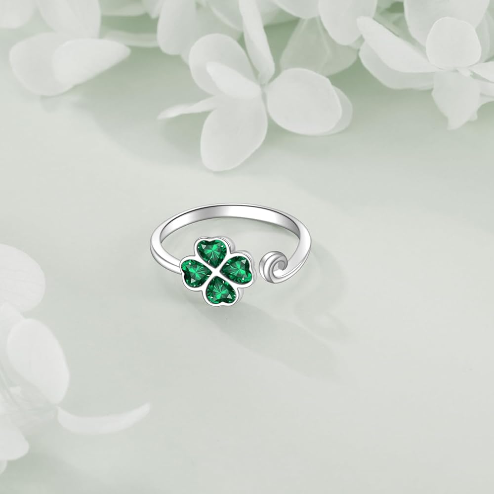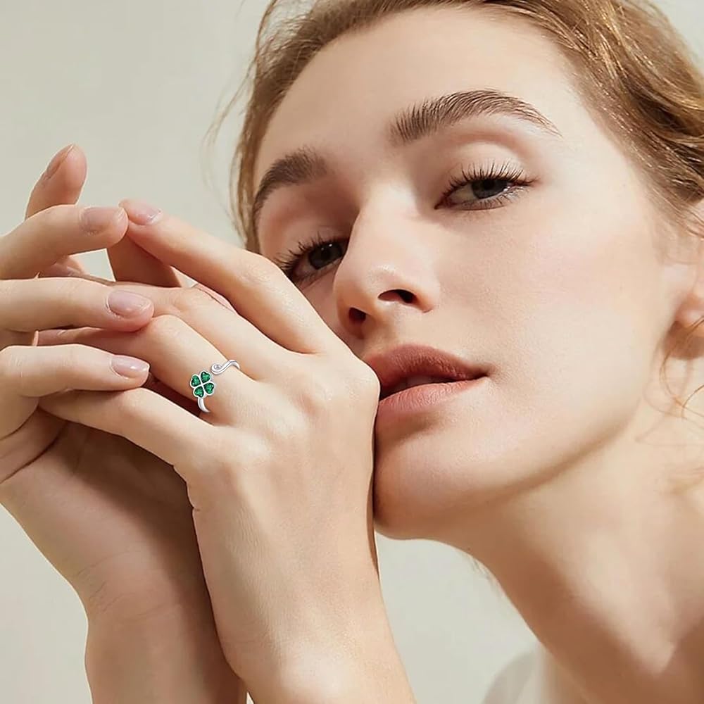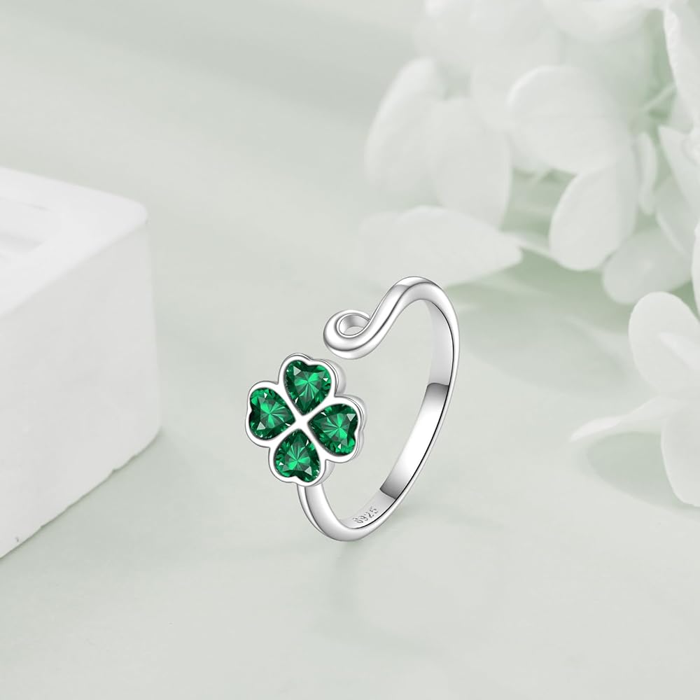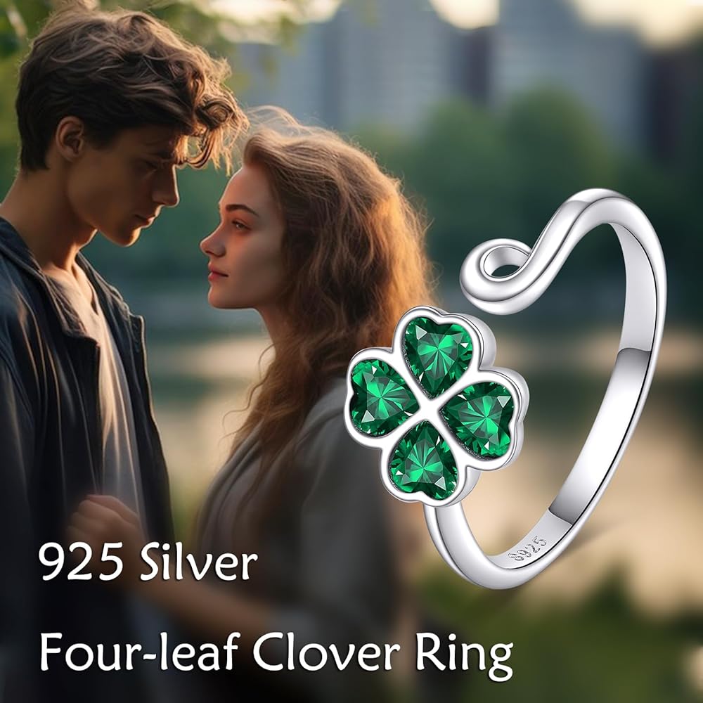 Four Leaf Clover Ring - The first leaf represents hope, the second leaf indicates confidence, the third leaf is love, and the fourth leaf is a symbol of luck. How romantic to give the lucky ring to the person you are interested in!