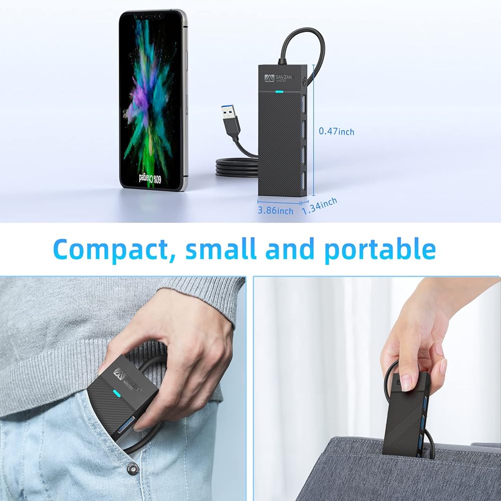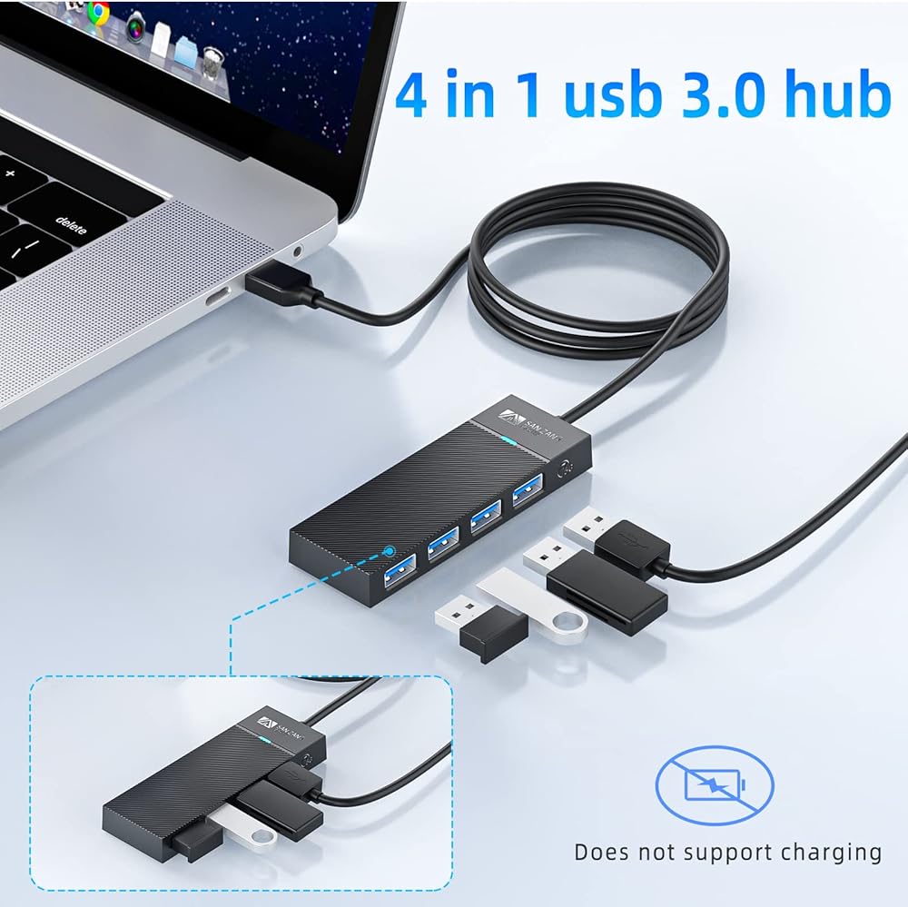 محور USB 3.0 بـ 4 منافذ، محور USB نحيف للغاية، مقسم USB، موسع USB للكمبيوتر المحمول، محول USB متعدد المنافذ، موسع منافذ USB متعدد لأجهزة MacBook Air Por Windows/Mac OS، محرك فلاش Linux، محرك الأقراص الصلبة المحمول (3.2FT/1M)