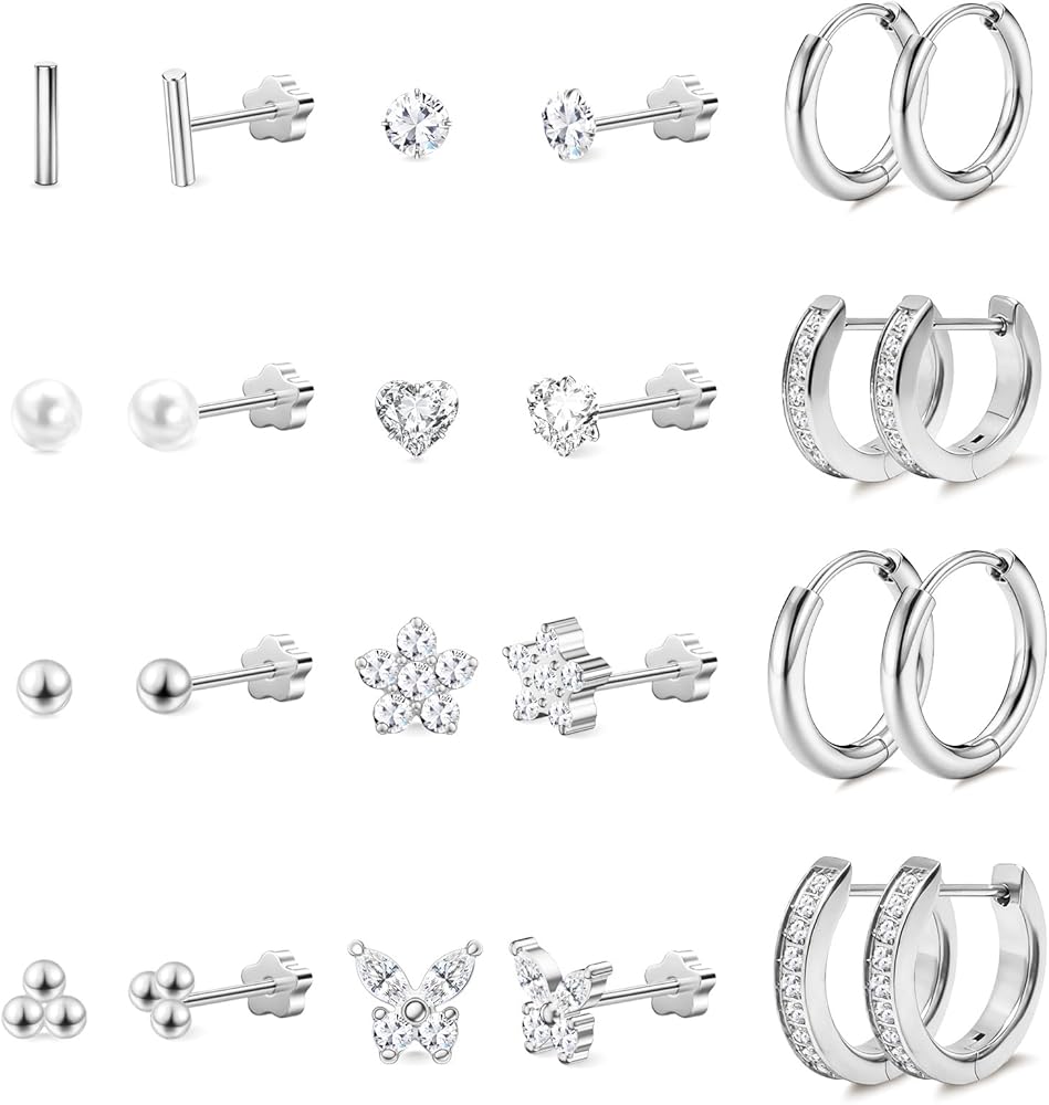 Black Flat Screw Back Cubic Zirconia Cartilage Earrings are Made of 316L Surgical Stainess Steel,Nickle Free and Lead Free,Safe to Sensitive Ears.One Order Contains 6 Pairs Different Colors of Zircon Screw Back Earrings. More Choices for Daily Wear, Meet Your Needs in Multiple Color.
