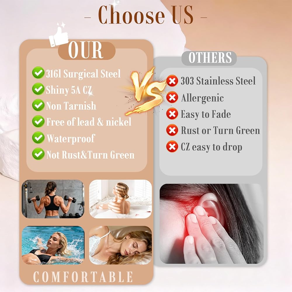 【Hypoallergenic Assurance】- Crafted from high-quality 316L stainless steel, these earrings are specially designed for sensitive ears. Their hypoallergenic properties ensure maximum comfort without compromising on style, making them suitable for prolonged wear.