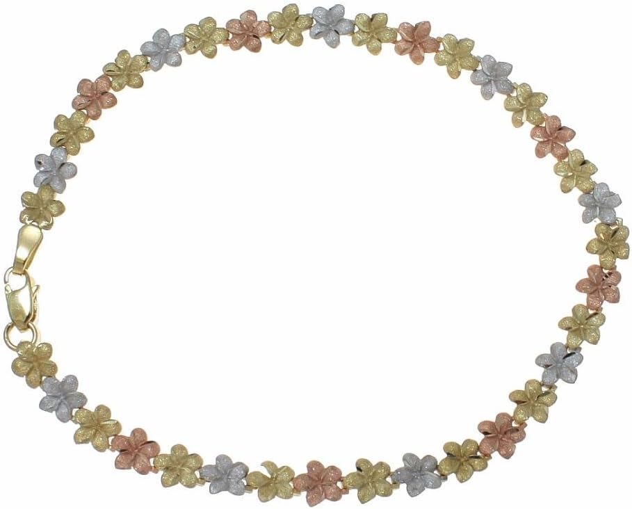 مجوهرات آرثر 14 قيراط أصفر وردي أبيض ثلاثي الألوان ذهبي هاواي بلوميريا زهرة خلخال 5.5 مم 9 بوصة