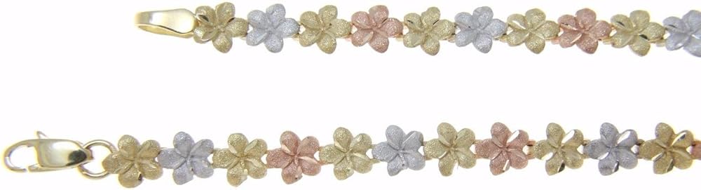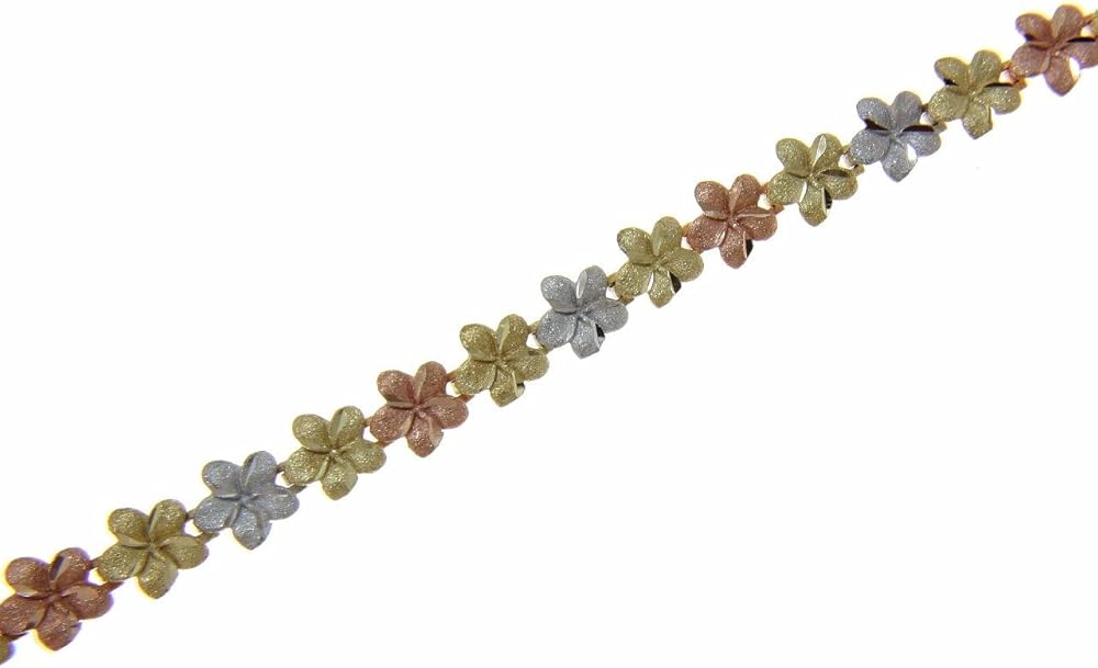 14k yellow white rose tricolor gold Hawaiian plumeria flower anklet 5.5mm 9"