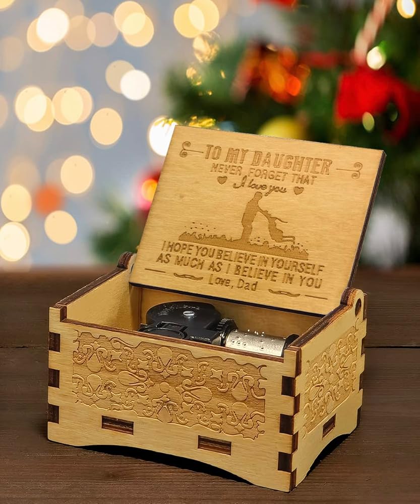 هدايا ابنة من الأب، صندوق موسيقى خشبي، هدايا من الأب إلى الابنة، مناسبة لعيد الميلاد/الكريسماس/التذكار