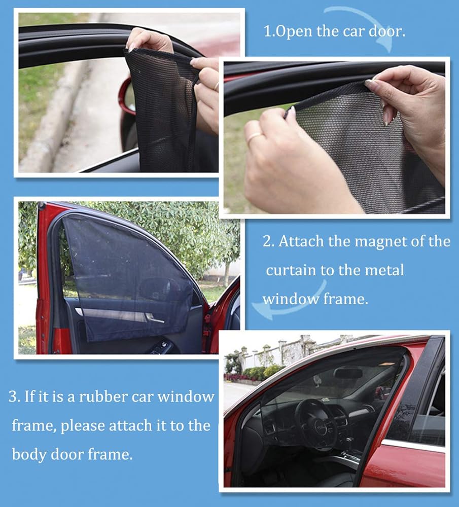 ✔【منتج جديد】① أحدث ستارة سيارة صيفية للوقاية من الشمس لا تؤثر على فتح النوافذ الجانبية أو إغلاقها، ويمكن تحريك المغناطيس وفتحه. ② يمكن طي شاش النافذة الجانبية حسب الرغبة لسهولة التخزين.