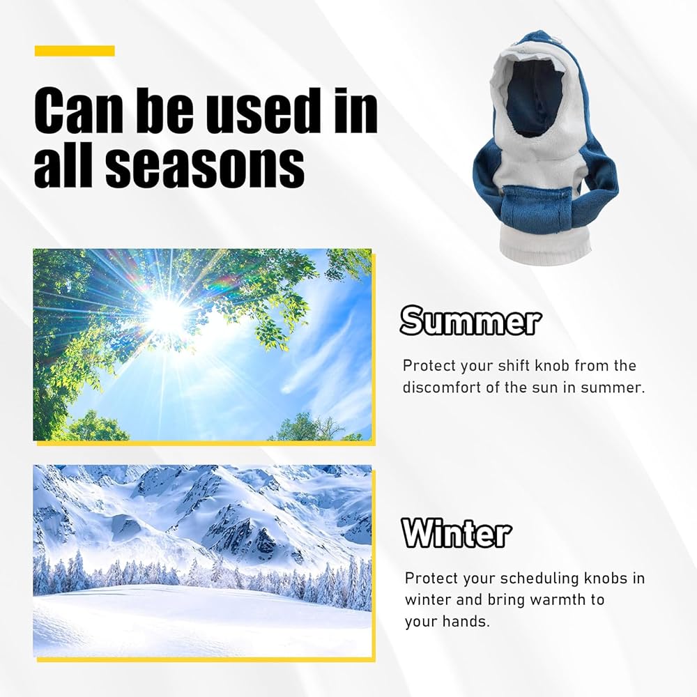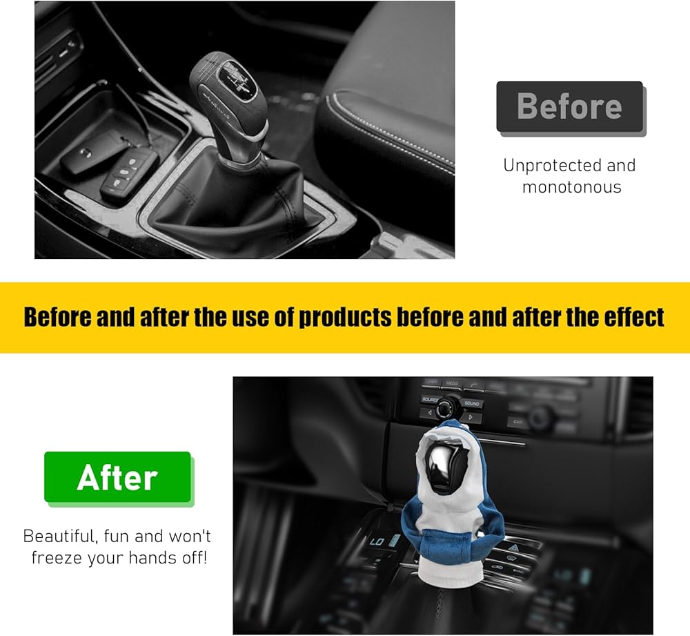 【Universal Fit】: You just need to put it directly over the shift knob. The shark and frog shaped hoodies measure 6.18×3.94 inches and 6.69×3.94 inches respectively. They fit most of the shift knobs for manual or automatic vehicles on the market, but it is still recommended that you check the size before buying.