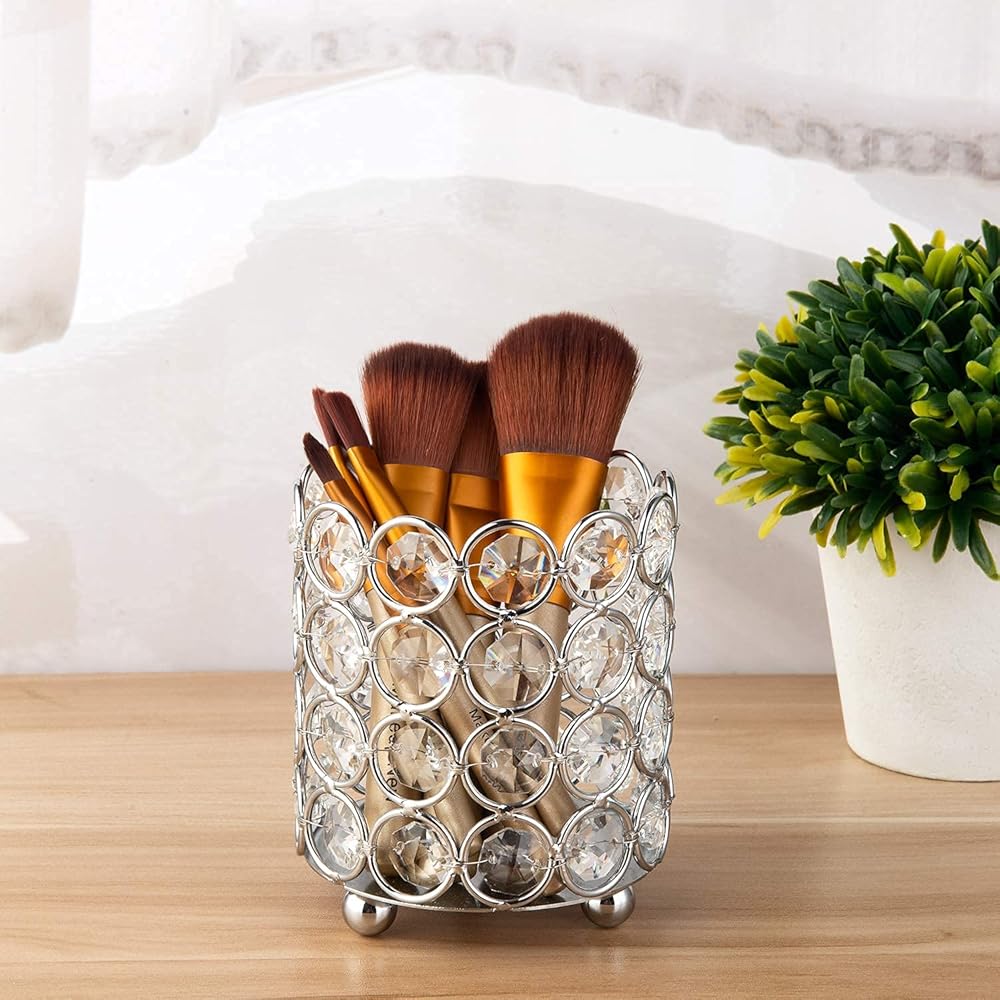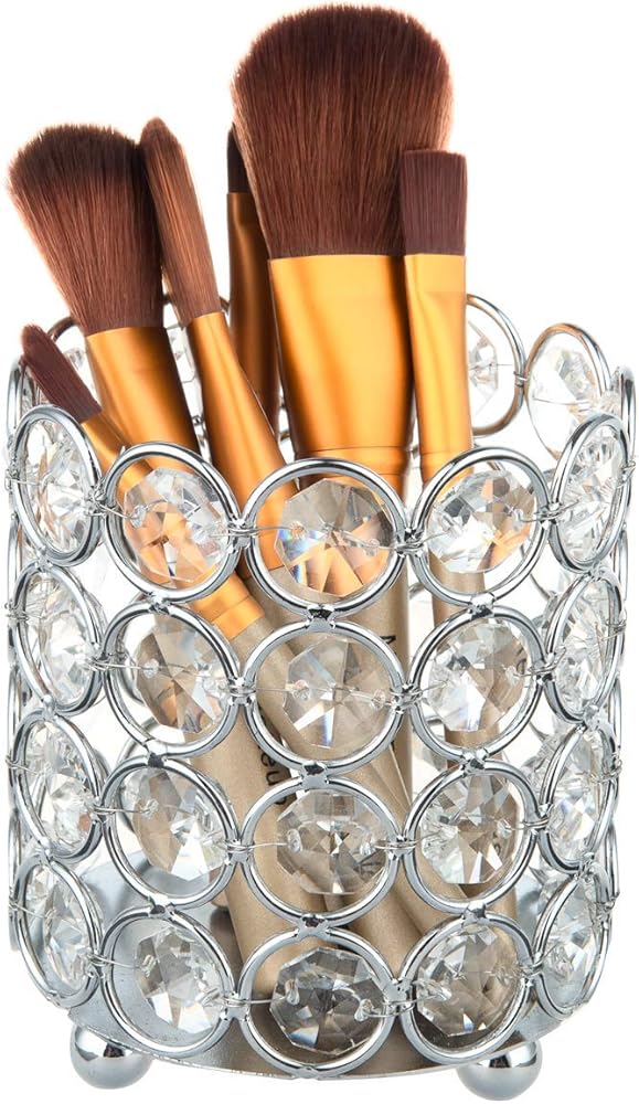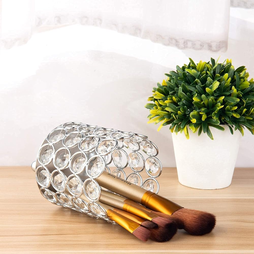 • Crystal Makeup Brush Holder Material: Metal Plated with Crystal beads