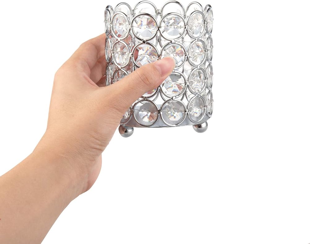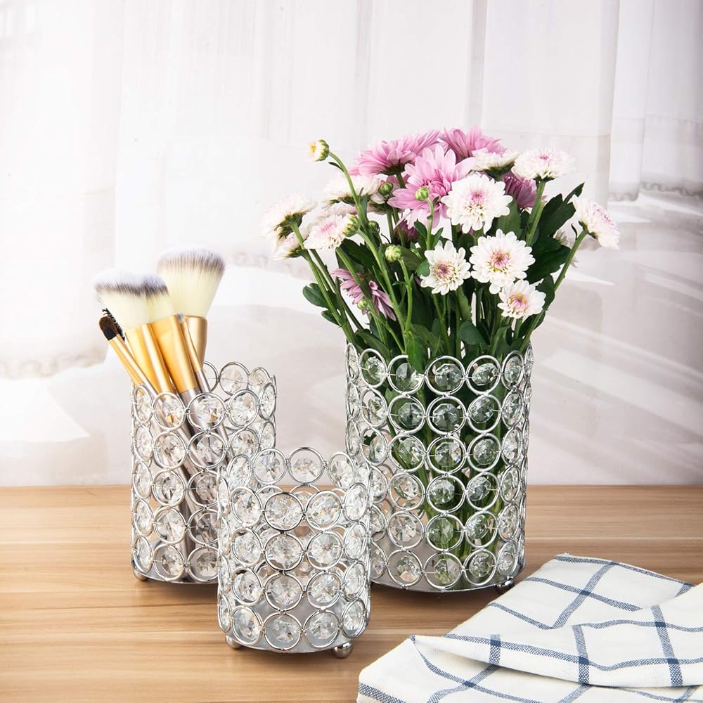 Feyarl كريستال فرشاة للمكياج حامل مشط حامل منظم شمعة حامل شمعة نذرية فانوس طاولة تسريحة الزفاف المنزل ديكو (فضي)