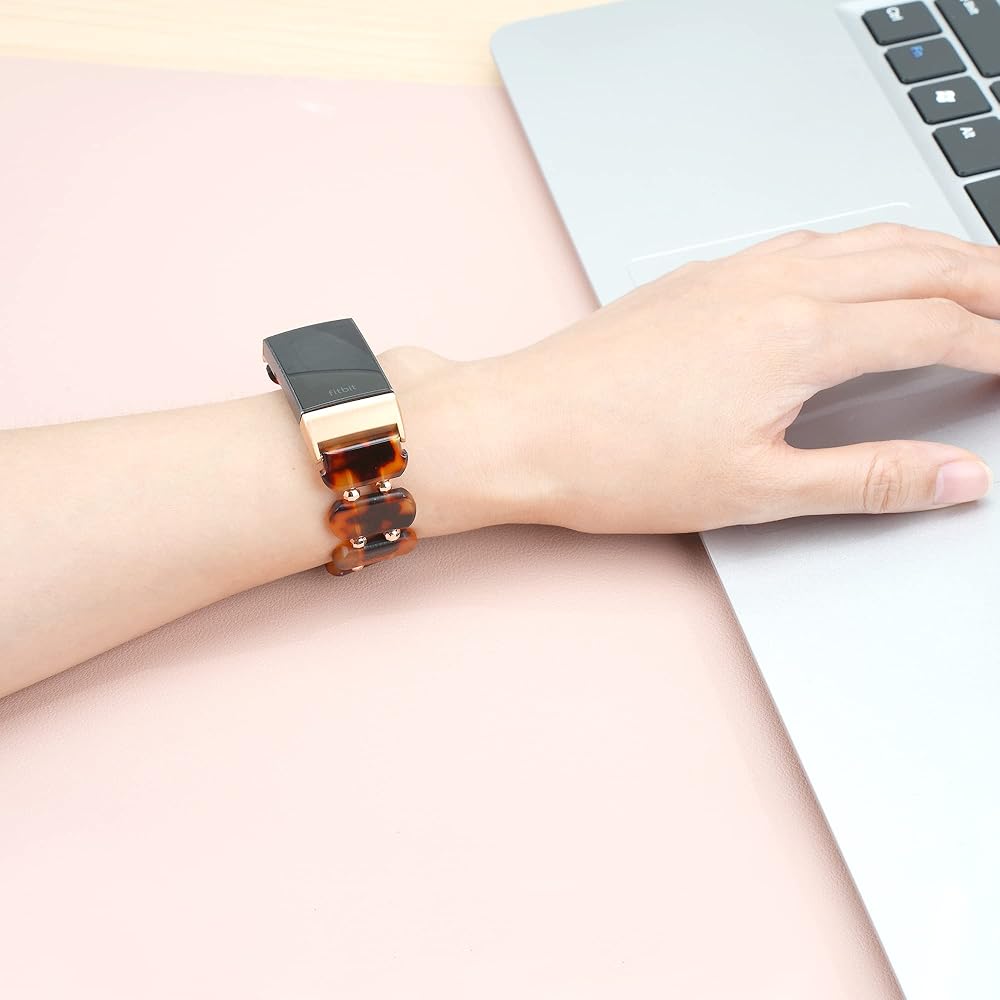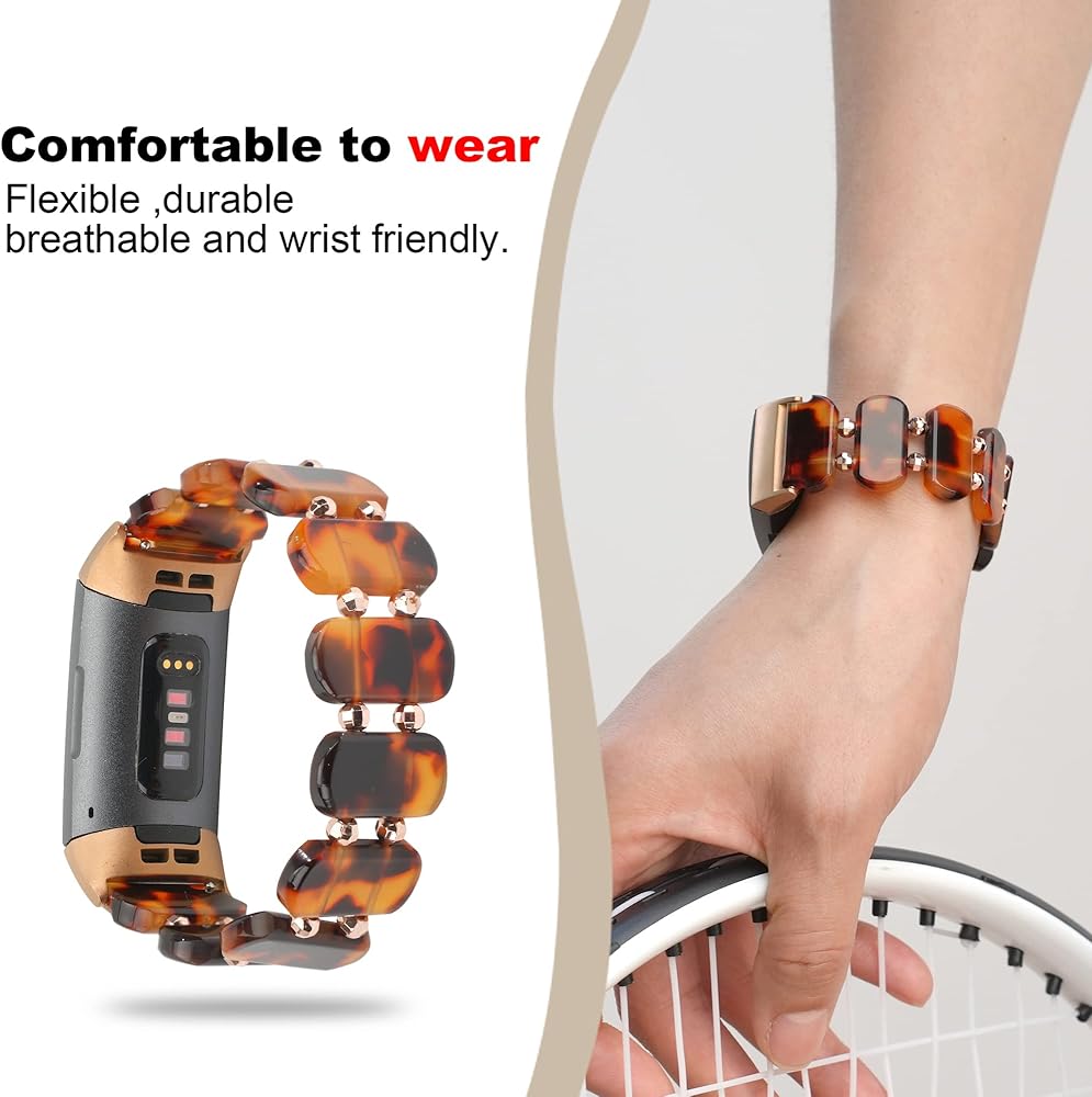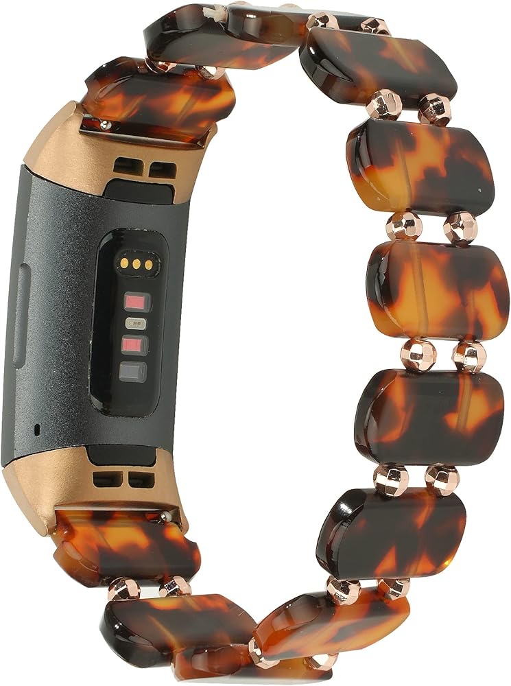 Wongeto Compatible with for Fitbit Charge 4/ Fitbit Charge 3/ Charge3 SE,Tortoise Shell Stretchy Strap Women Waterproof Replacement Wristbands Bracelet with Meads for Women Men