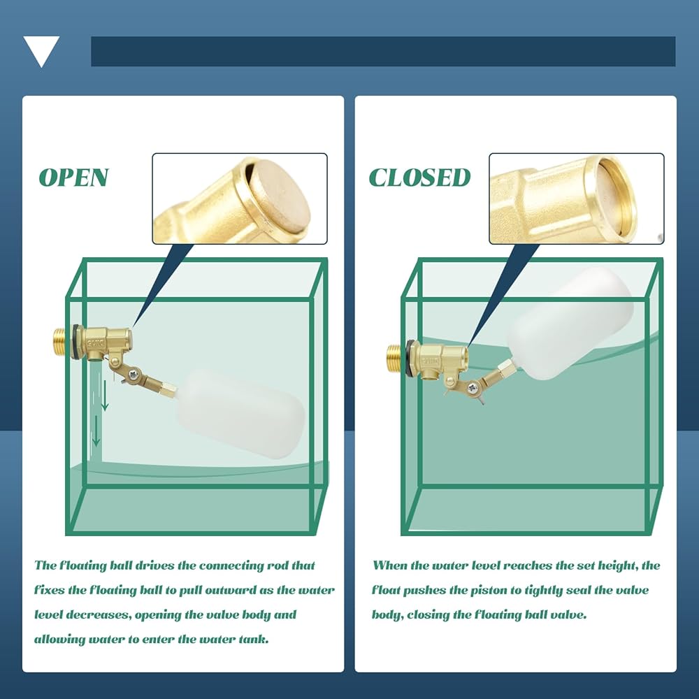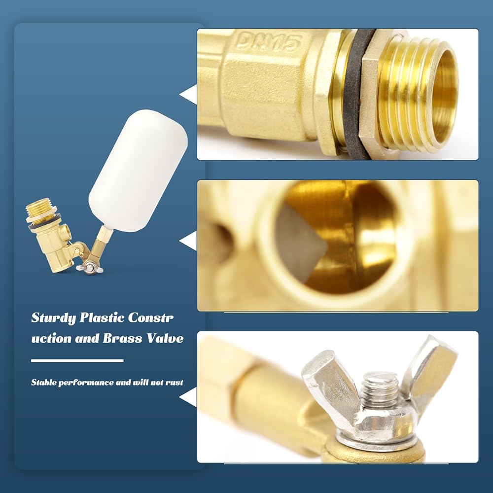 • أداء موثوق: يتميز هذا الصمام العائم بهيكل بلاستيكي قوي مع صمام نحاسي، ثابت ولن يصدأ. يدعم هذا الصمام العائم توصيل أنابيب المياه الملولبة الداخلية مقاس 1/2 بوصة بحشيات قياسية لمنع التسرب.