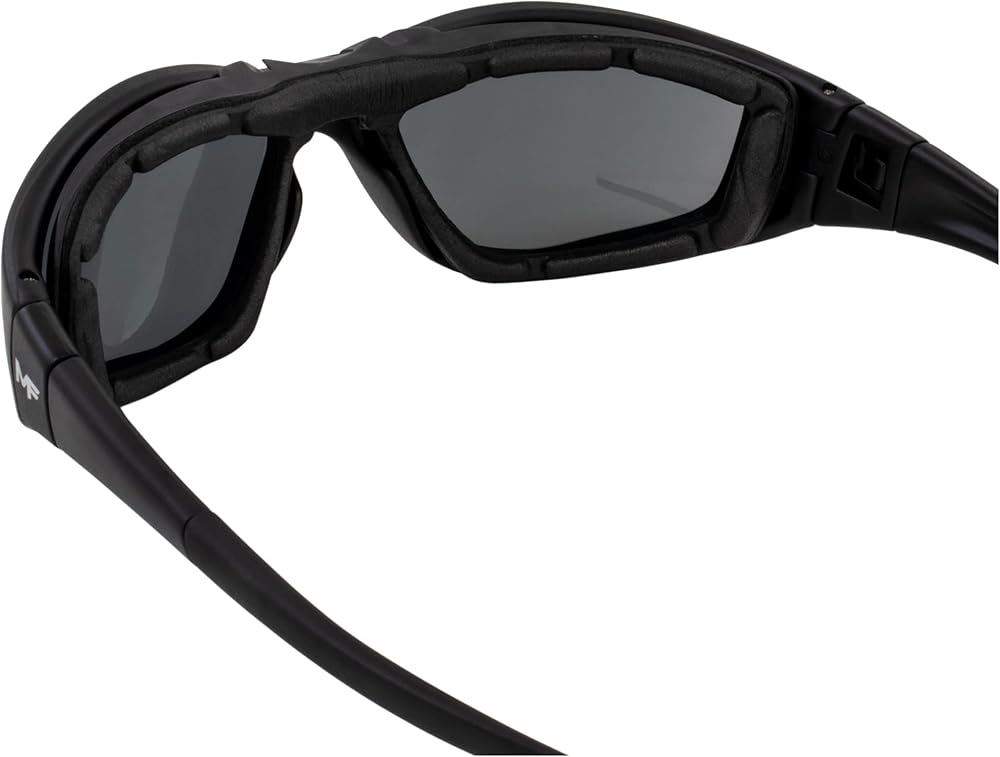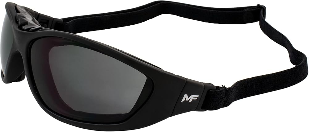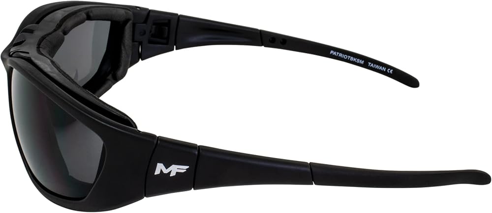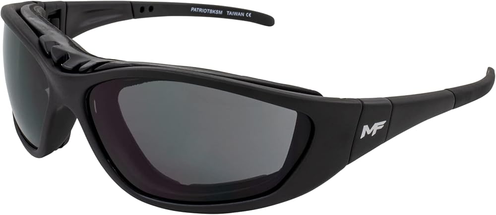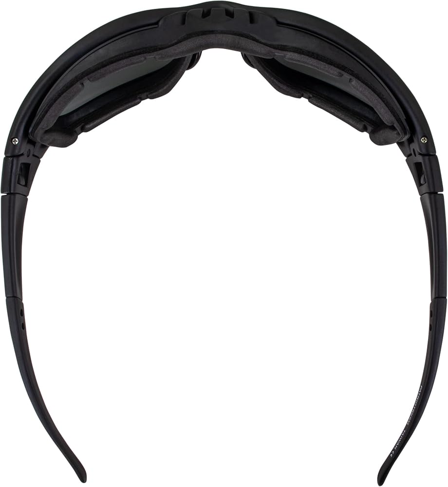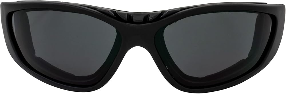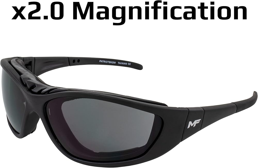 Like having three pairs of sunglasses in just one pair? Yep. Want regular glasses? Check. Want a pair of foam riding glasses? We got you. Do you need full-on goggles? Look no further. The Patriot safety and riding glasses combine the advantages of multiple pairs of eyewear into one. It can be worn as a foam-padded riding glass or when needed, the airy foam can be removed and the glasses can be worn as a regular sports wrap. The glasses' easily removable arms can be replaced with the optional elastic strap, transforming your Patriot foam-padded riding glasses into Patriot goggles. The high-quality lenses have antifog coatings and provide UV400 protection from the sun's potentially dangerous ultraviolet rays. When you wear the Patriot, the polycarbonate lenses will give you the peace of mind that comes with knowing that your eyes will be shielded from harm to the greatest extent possible. It has a +2.0 magnification on the bottom portion of the lens, which is used for close-up viewing, and a regular lens on the top portion, which is used for distant viewing. This allows you to comfortably switch between reading and looking at something in the distance without constantly taking them off and putting them back on, as other sunglasses require. Available with smoke lenses, these padded motorcycle sunglasses are most effective in bright conditions because they reduce glare and improve visibility. Safety. Style. Three functions in one great-looking pair. Who says you can't have it all? With our Patriot Bifocal Safety Glasses, you can have it all!