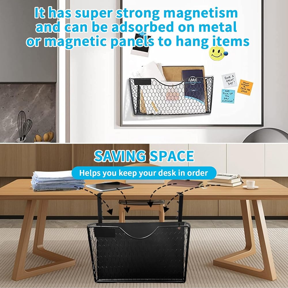 مادة فولاذية عالية الجودة: يتميز منظم السلة تحت المكتب لدينا بسلك فولاذي خفيف الوزن ولكنه قوي وبنية شبكية مع لمسة نهائية من مسحوق أسود مقاوم للخدش لمتانة طويلة الأمد في مجموعة متنوعة من بيئات المنزل والمدرسة والمكتب.