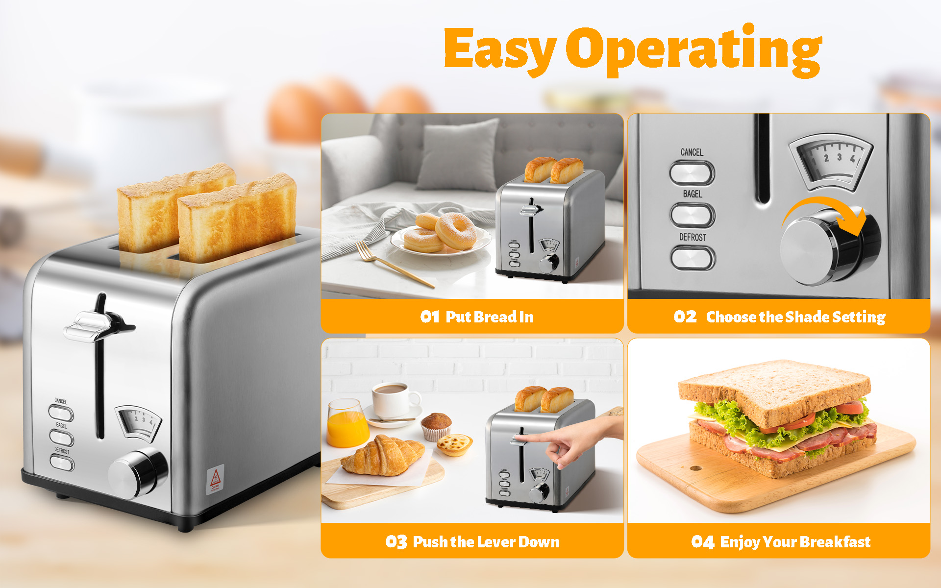 Multiple functions: Bagels, croissants, muffins and everything in between will taste great when toasted with this 2-slice toaster. With 5 browning options and 3 functions of Defrost & Bagel & Cancel, you can customize your bread just the way you like