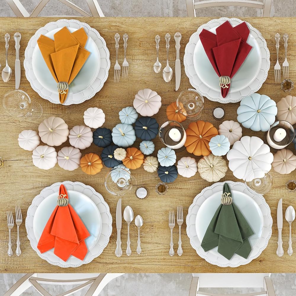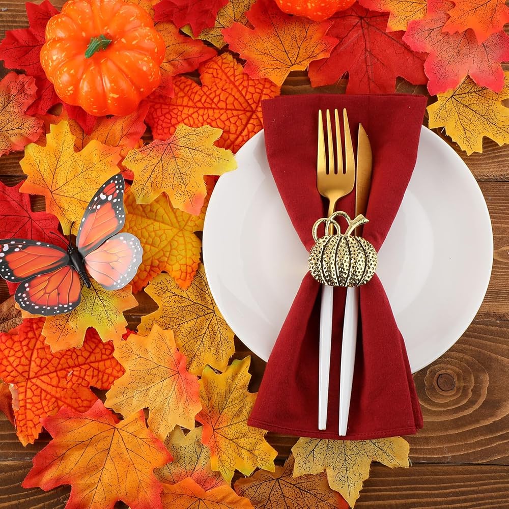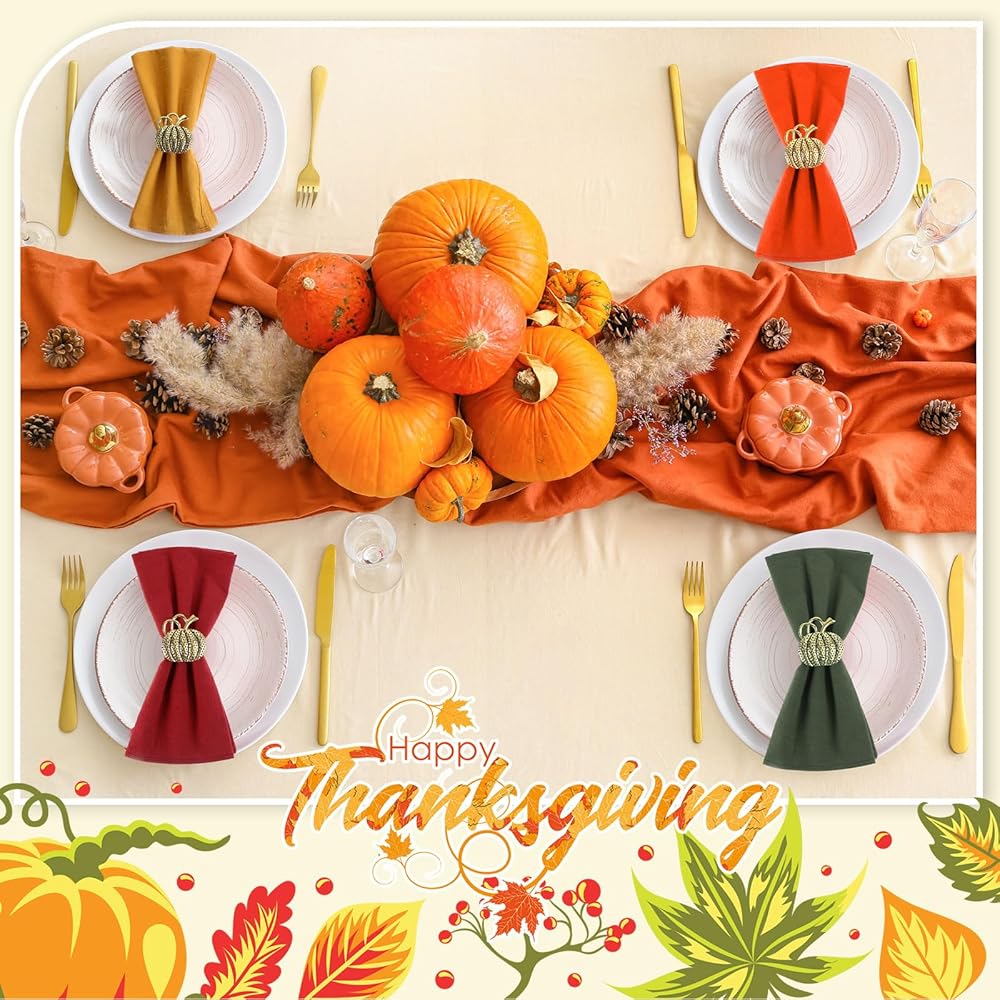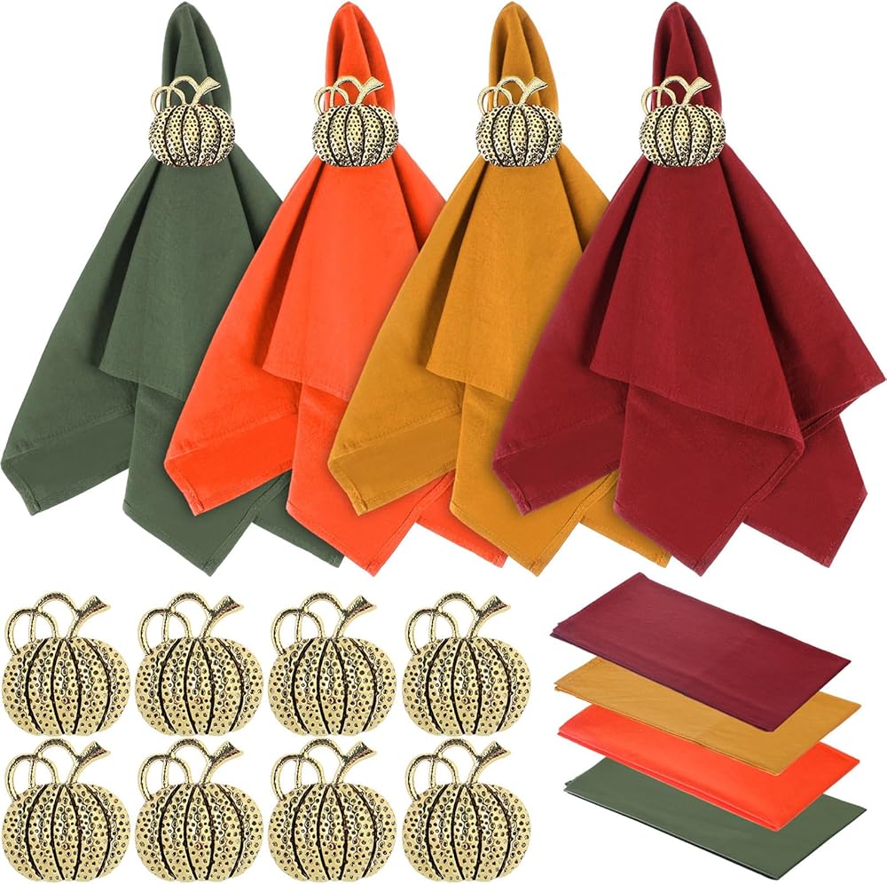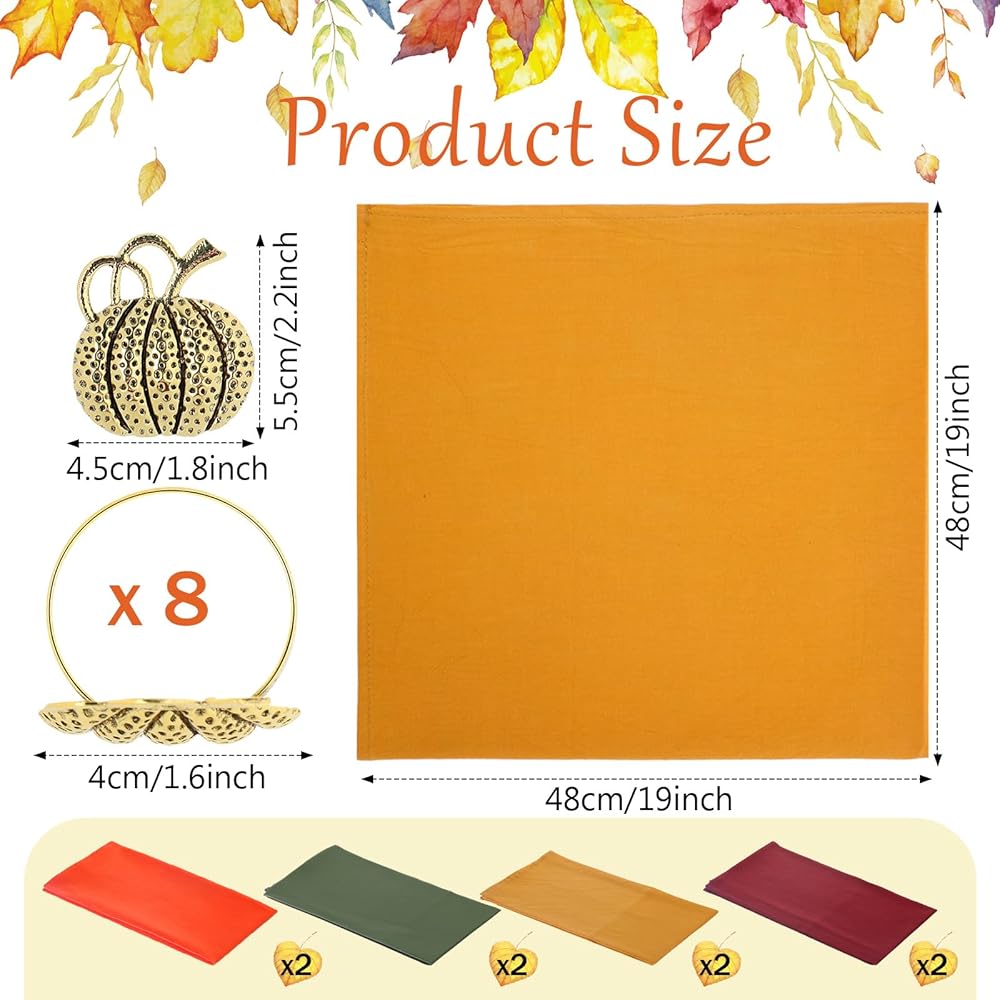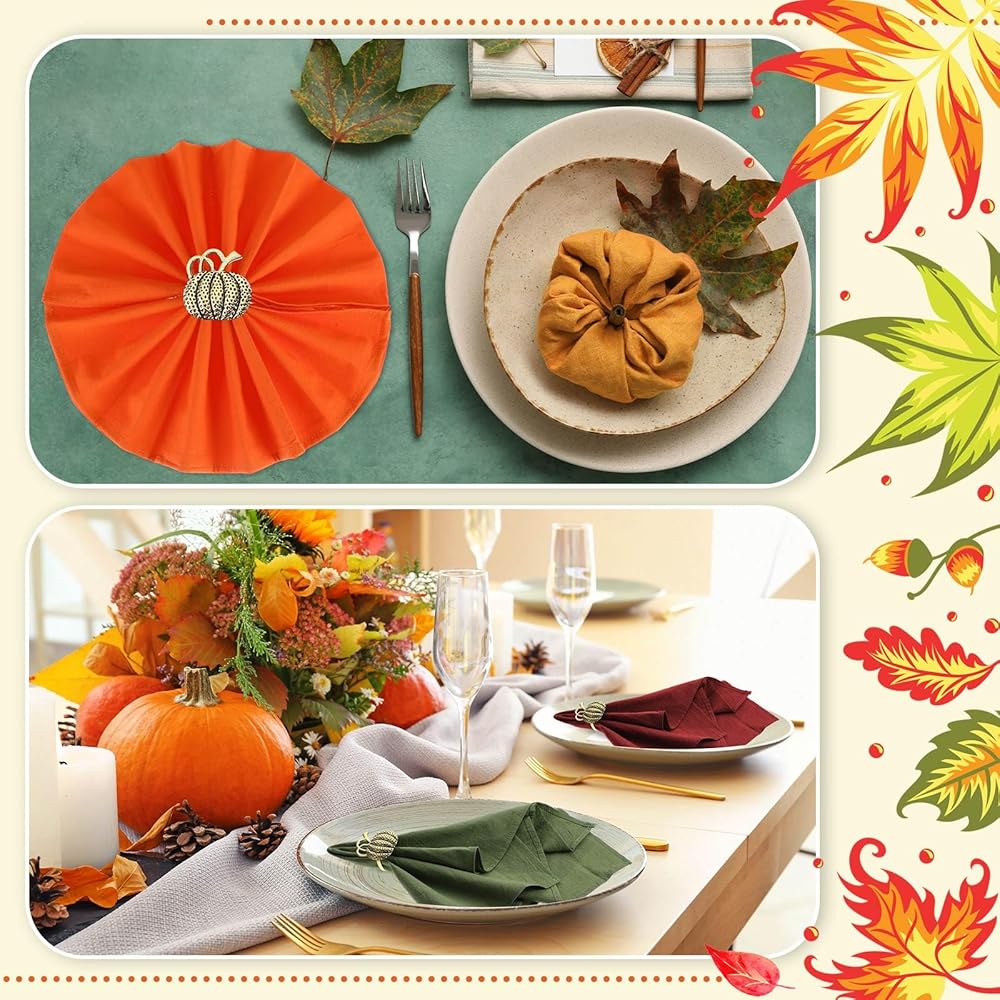 متعددة الاستخدامات: مناديل العشاء هذه متعددة الاستخدامات، ويمكن وضعها لتزيين حفلة عيد الشكر، والحفلات التي تحمل عنوان الخريف، وتجمعات الحصاد، والفندق، والمطاعم؛ يمكن أيضًا استخدام حاملات المناديل هذه لتزيين زجاجات النبيذ وباقات الزهور في حفلتك