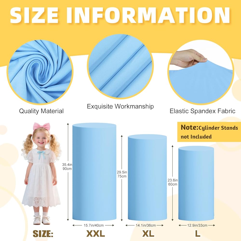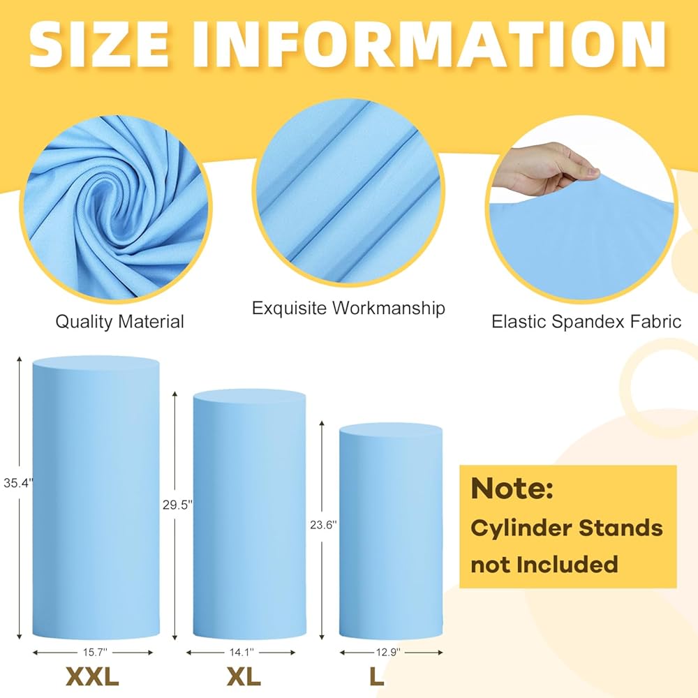 【🧸خامة عالية الجودة - مجموعة أغطية أسطوانية مكونة من 3 قطع】أغطية الحامل مصنوعة من نسيج سباندكس الفاخر، ومرن، وخالي من التجاعيد ومقاوم للبهتان. من المؤكد أن أسطوانات الحفلات ستكون نقطة محورية في حفل الاحتفال الخاص بك.