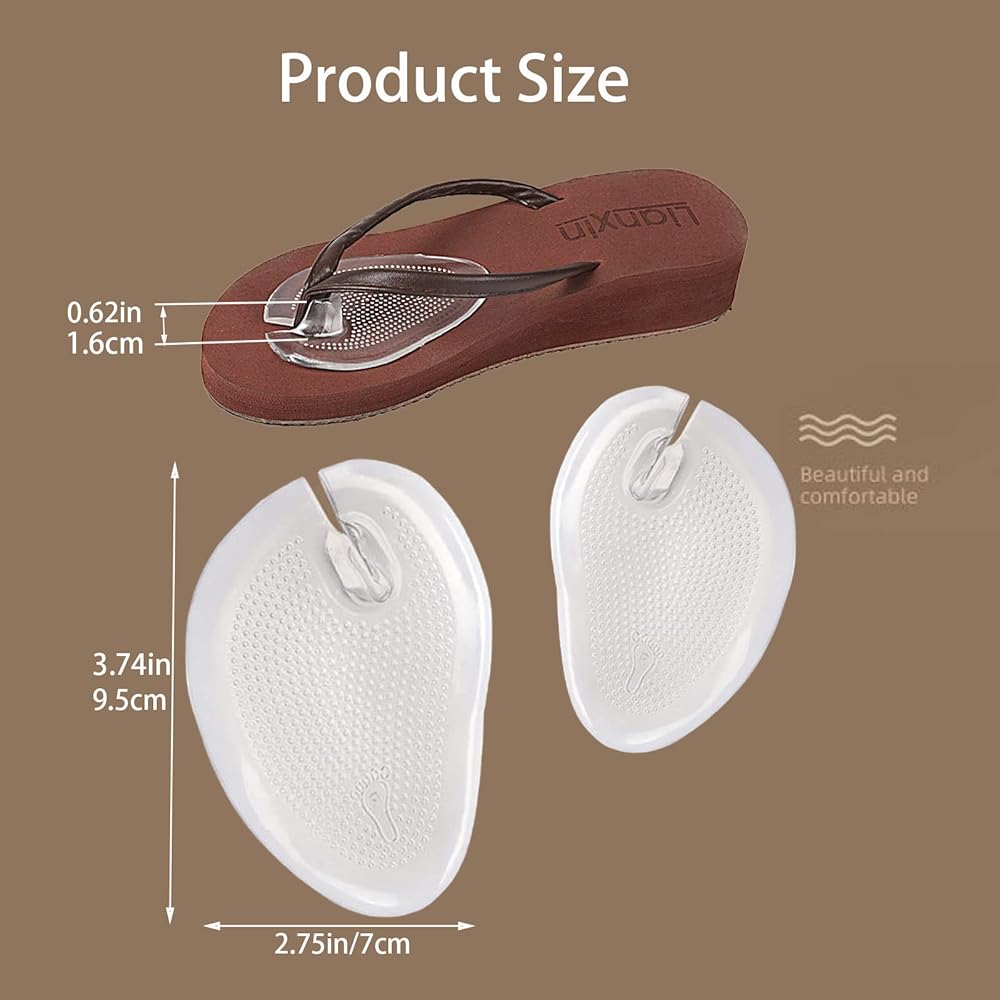 • 【Right size】 The gel flip-flop front footbeds are designed to be the right size to fit well in most shoes, such as sandals, heels, flip-flops, slippers and other footwear with toes, avoiding annoying pain and friction and making you comfortable while walking.