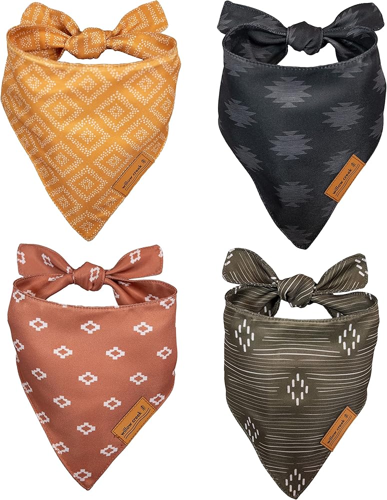 • FASHIONABLE AND TRENDY: Willow Creek provides you with designs that will make your pet's style the envy of your neighbors and friends. Each pack comes in a variety of patterns and colors designed to complement the natural tones of your pet. Whether for a special occasion or an everyday accessory, this neck bandana will keep your furry friend looking stylish, sharp, and clean. Make your furbaby the talk of the town with these fashionable designs and patterns.