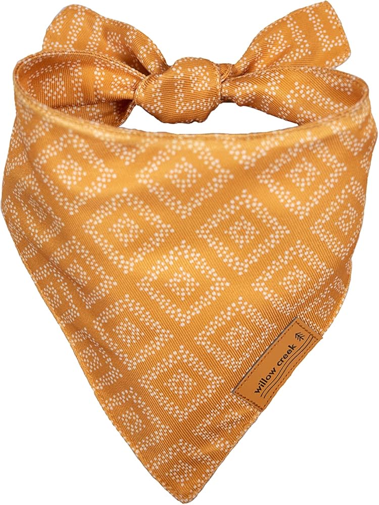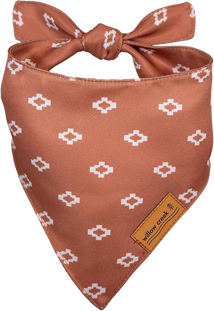 • ADJUSTABLE SIZING AND COMFORT: Willow Creek Bandanas come in three standard sizes: Small (necks up to 14”), Large (necks up to 21”), and X-large (necks up to 31”). The long ties allow for an adjustable fit to a variety of neck sizes and tie into an attractive knot. The curve-cut neckline is designed to fall around the natural neckline of your pet keeping them comfortable without excess or bunched up fabric.