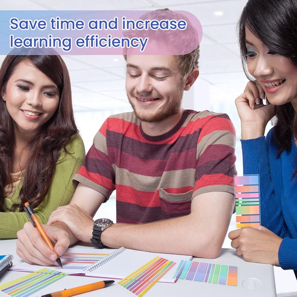 [عملي] يعتمد شريط الملاحظات الضيق المتدرج الشفاف على تصميم شفاف، والذي لا يخفي أبدًا أي معلومات قمت بوضع علامة عليها، ولن يؤثر على قراءتك. كما أن علامات التبويب المتدرجة بألوان قوس قزح أكثر جاذبية، وتساعدك في العثور على الصفحة المستهدفة في الكتاب بسرعة وسهولة أكبر. لذلك لا تحتاج إلى وضع علامة باستخدام قلم ملون، ولن يلطخ أو يتلف كتابك المحبوب.