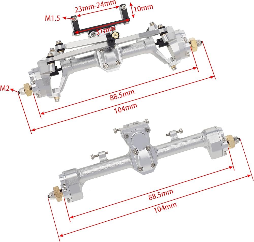 1/24 Scale Aluminum Alloy Axles Front and Rear Portal Axle Housing Assembly w/New C Knuckle for Axial SCX24 90081 C10 JEEP Upgrade Parts