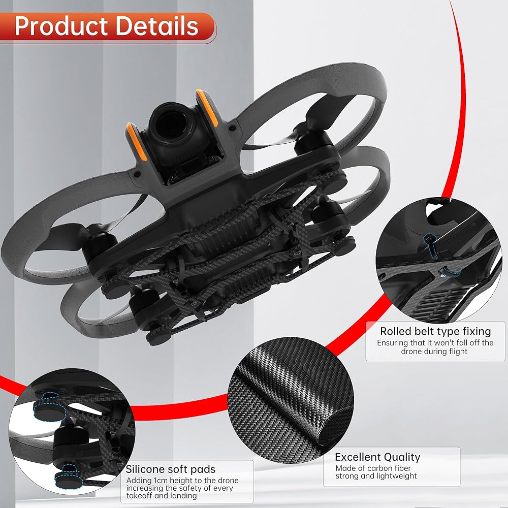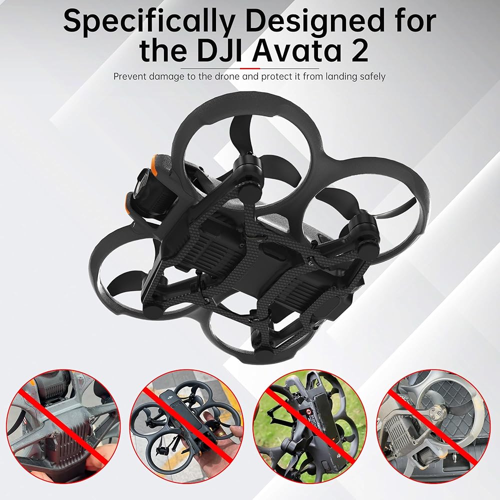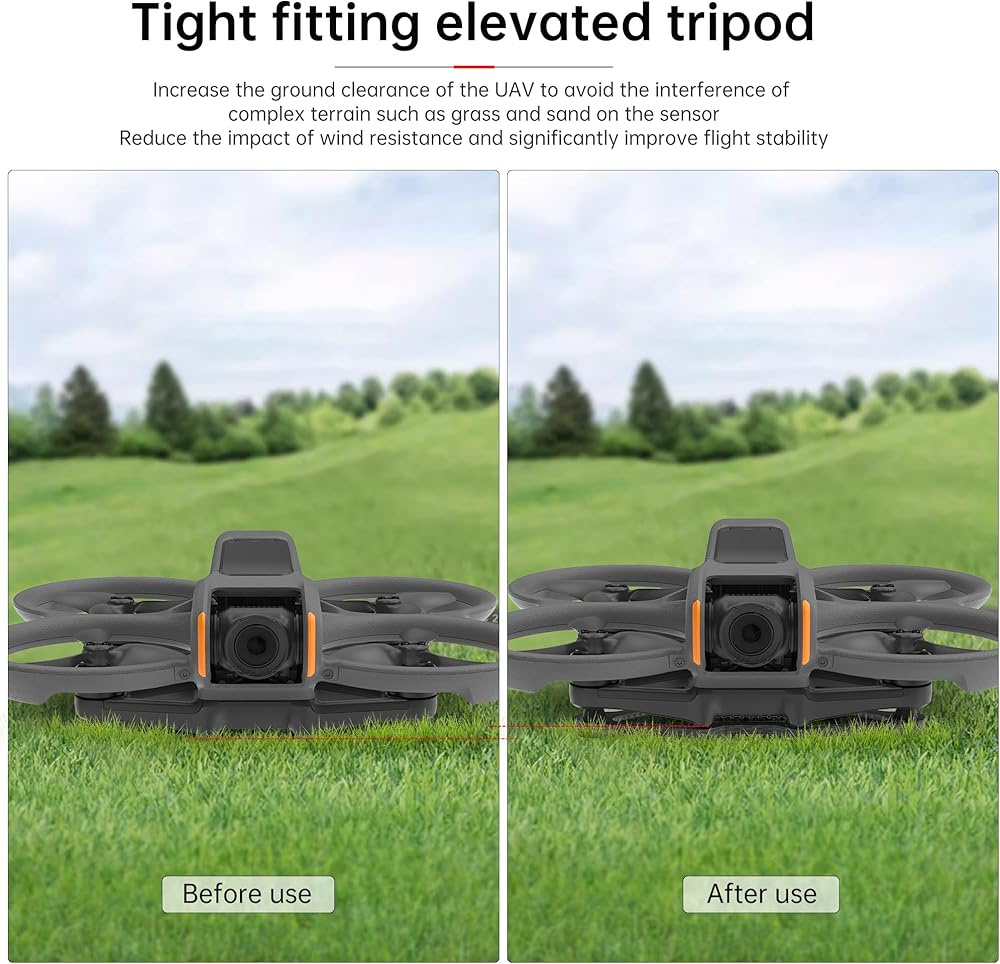 ✈️✈️【Skintight Protection】Accurately positioned to fit the drone tightly. There are silicone soft pads set underneath, adding 1cm height to the drone, increasing the safety of every takeoff and landing, more suitable for Avata 2. (Because Avata 2 will traverse complex terrain, adding too much height will affect the safe traversal of the drone)