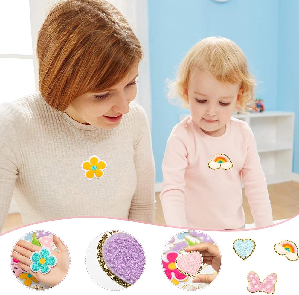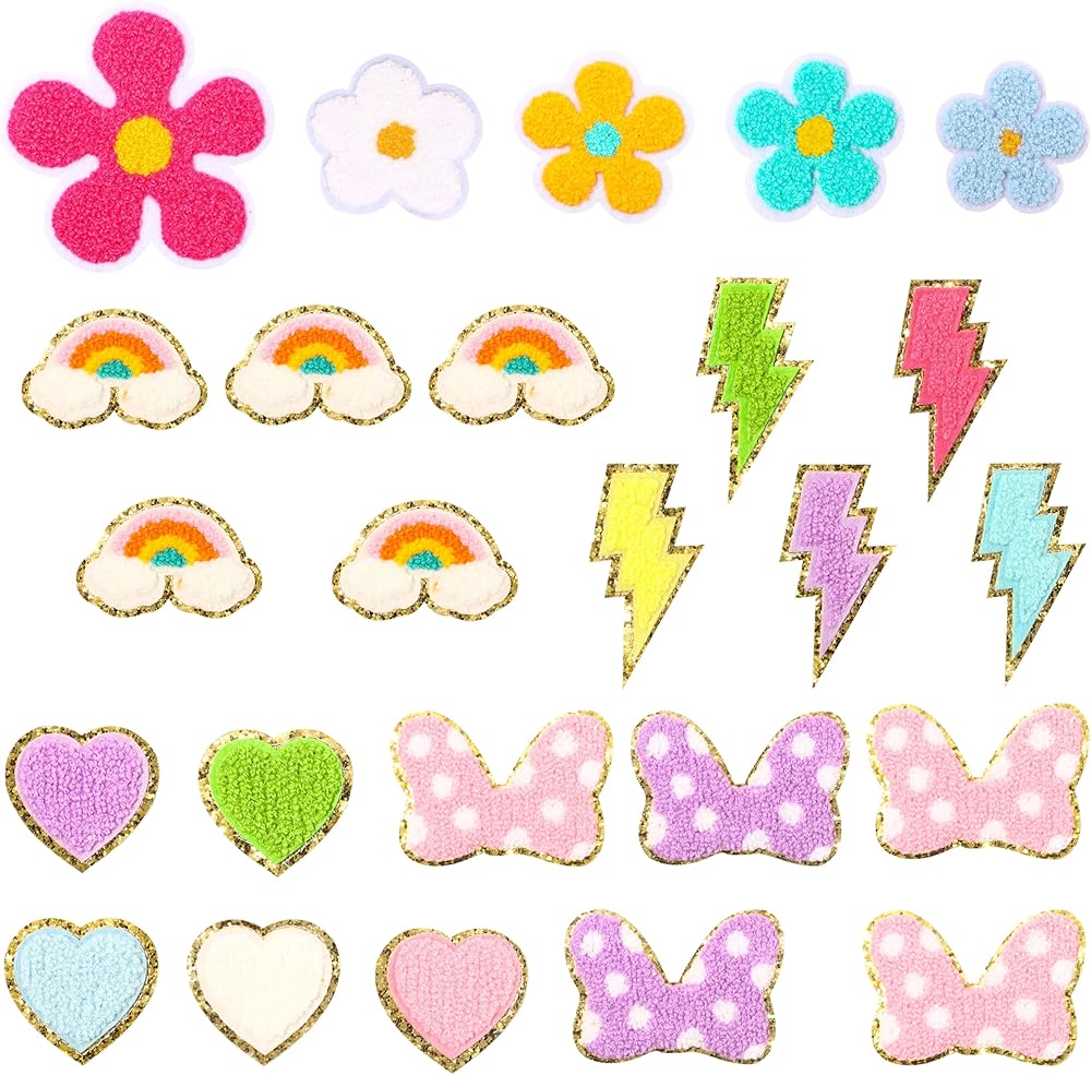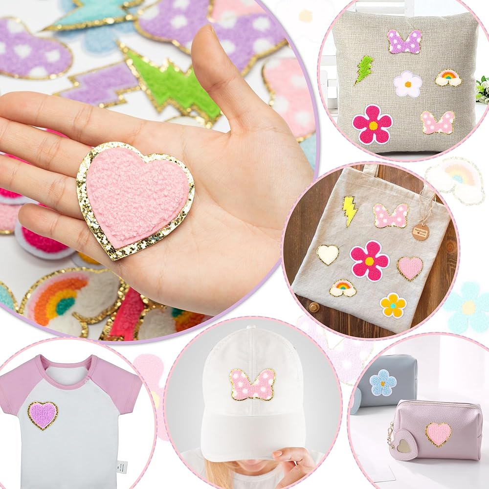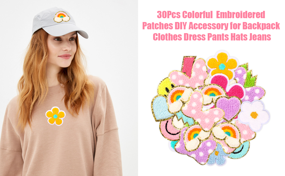ما الذي تحصل عليه: هناك 6 أنماط مختلفة يمكن كيها على الرقع، بما في ذلك شكل القلب، والابتسامة، والبرق، وقوس قزح، وعقدة القوس، والزهرة، إجمالي 30 قطعة في العبوة. تتميز جميع رقع الأنماط بألوان مختلفة. أنماط غنية وكمية كافية لتلبية احتياجاتك المتنوعة في صناعة الحرف اليدوية.