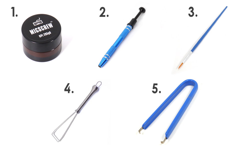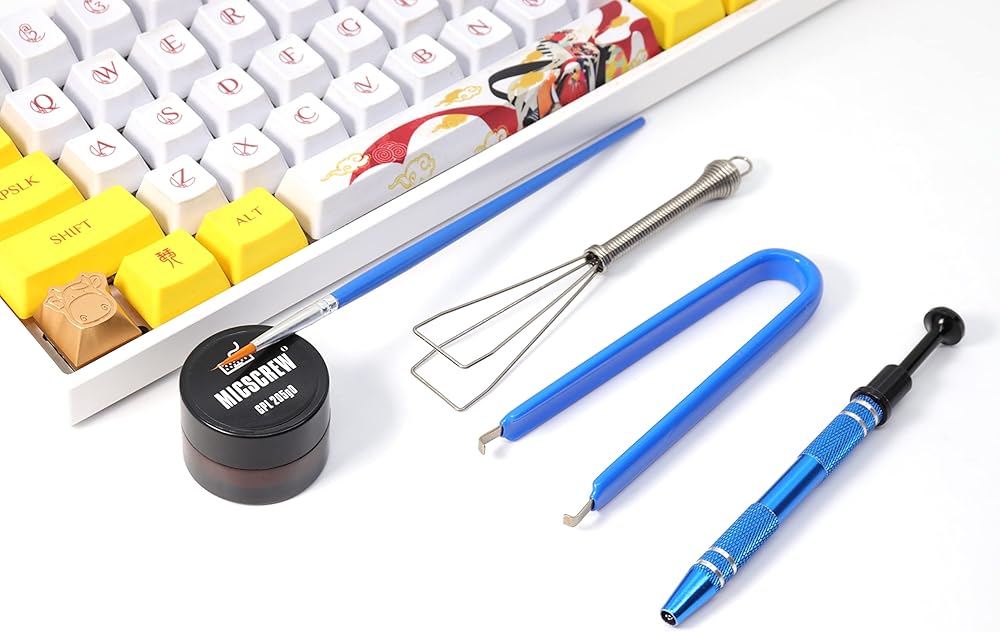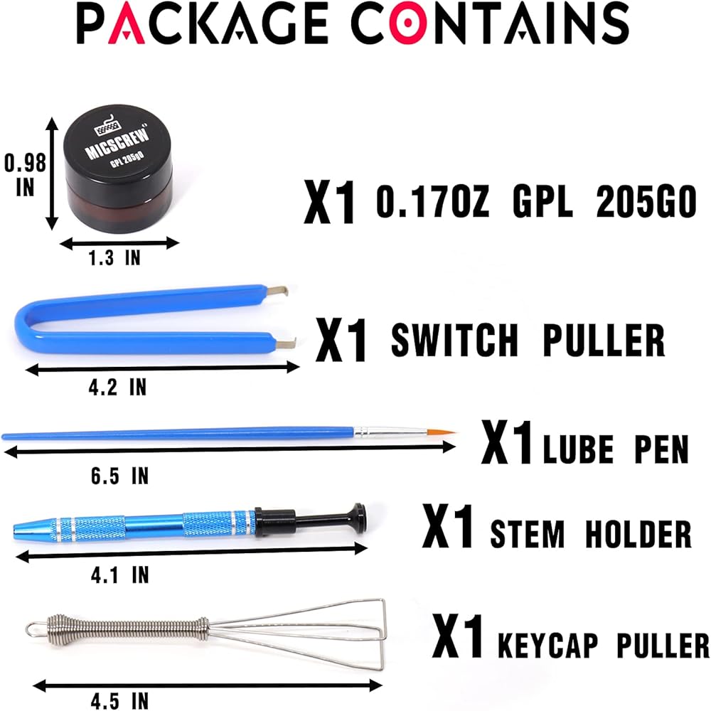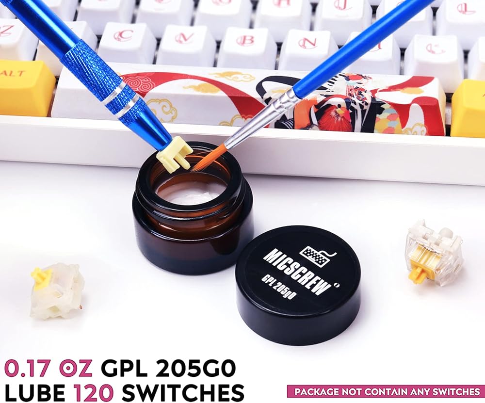 مجموعات تشحيم لوحة المفاتيح 5 قطع تحتوي على شحم GPL 205G0 0.17 أونصة، فرشاة تشحيم لحامل غطاء المفتاح وأداة سحب للمفاتيح، مادة تشحيم مفاتيح عالمية لمفاتيح لوحة المفاتيح الميكانيكية ومثبتها