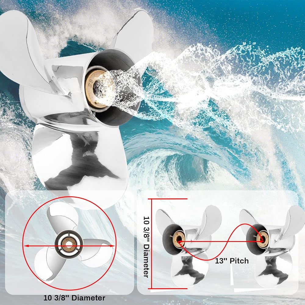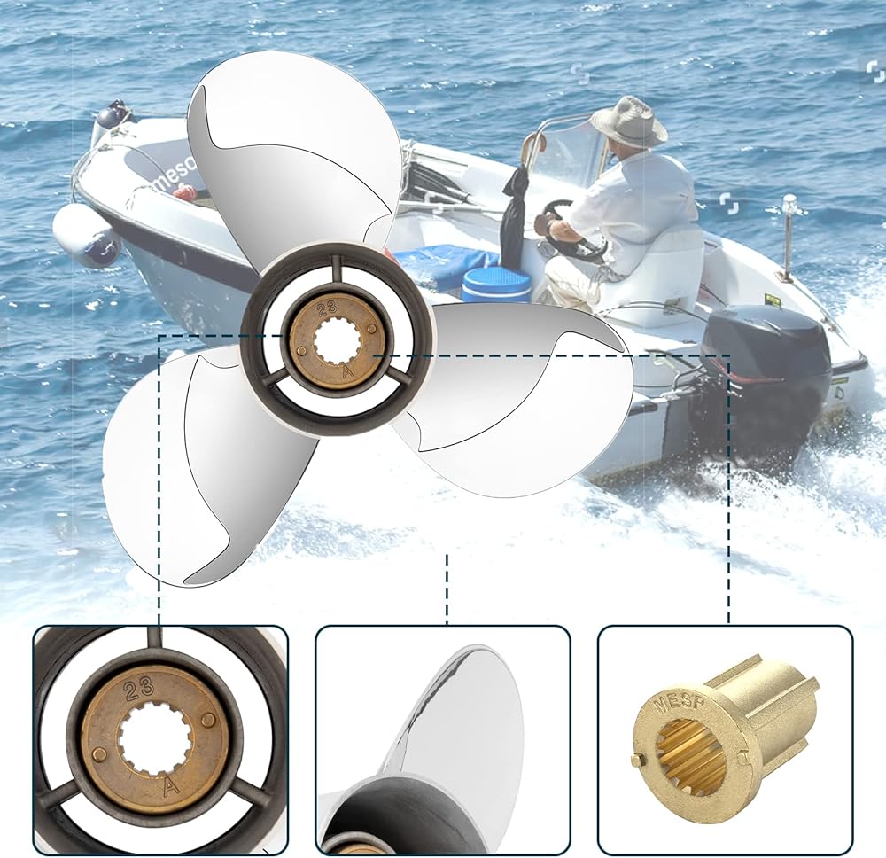 【التوافق: اختر المروحة البحرية المتوافقة مع محرك القارب الخاص بك. يجب أن تتوافق المروحة مع قوة المحرك ونسبة التروس وعدد الشرائح الموجودة على عمود المروحة.
