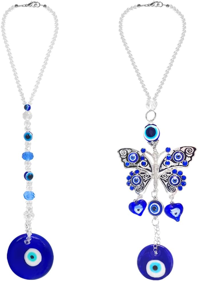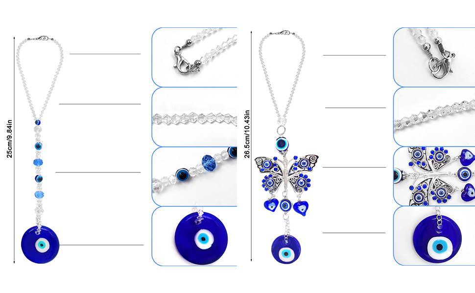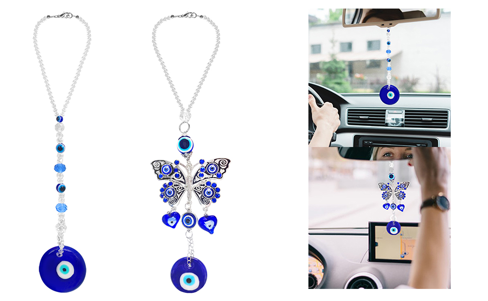 ما ستحصل عليه: تأتي الزينة المعلقة لمرآة السيارة مع تصميمين من الديكورات المعلقة الداخلية للسيارة ذات العين الشريرة الزرقاء المحظوظة، يمكنك اختيار أشكال مختلفة لتزيين سيارتك أو منزلك.