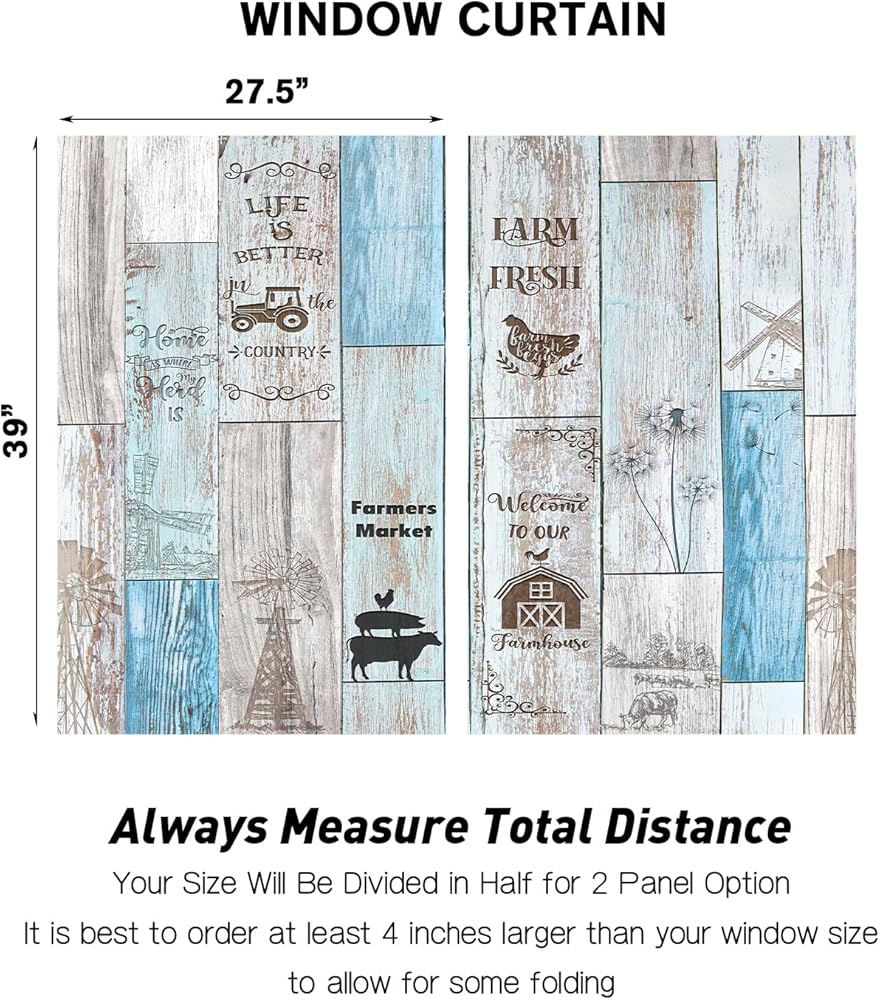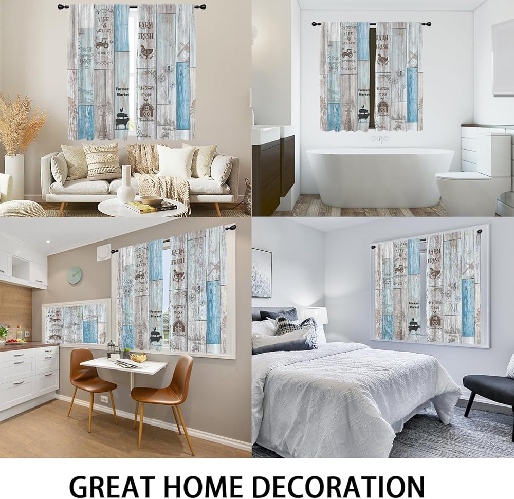 Coxila ريفي مزرعة المطبخ نافذة الستائر 27.5 × 39 بوصة صغيرة قصيرة صغيرة مقهى قضيب الجيب الأزرق البلد الخشب الحظيرة مزرعة غرفة المعيشة غرفة نوم العلاج المنزلي مجموعة من 2 لوحات الستار الستائر الطبقات
