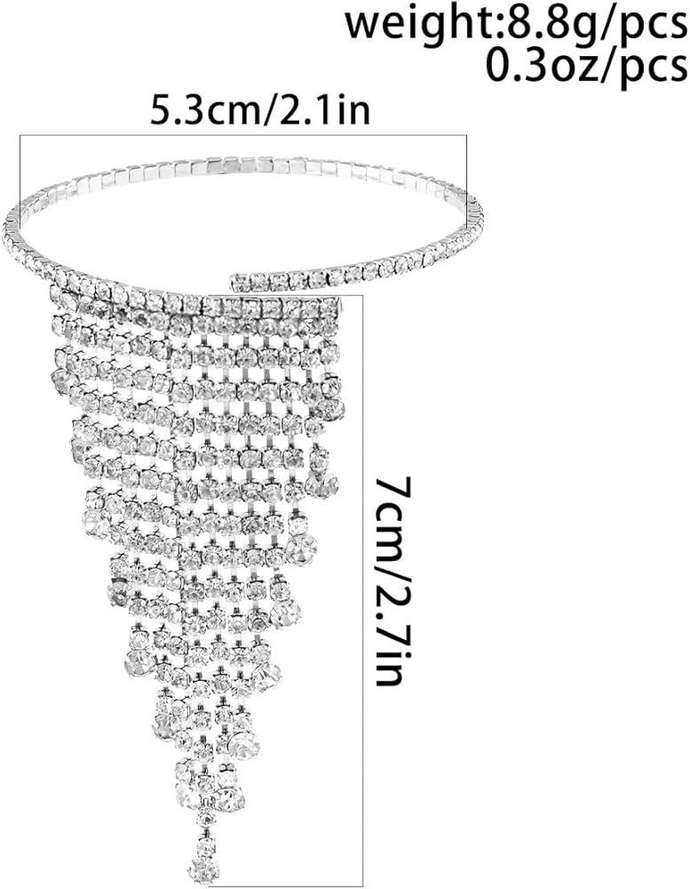 حجر الراين شرابة الذراع العلوي الكفة كريستال سلسلة مفتوحة قابل للتعديل شارة للنساء الذراع مجوهرات لحفل زفاف حفلة موسيقية