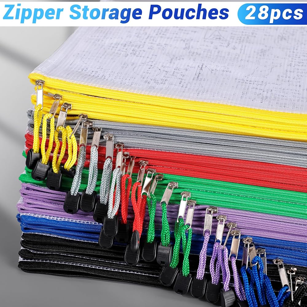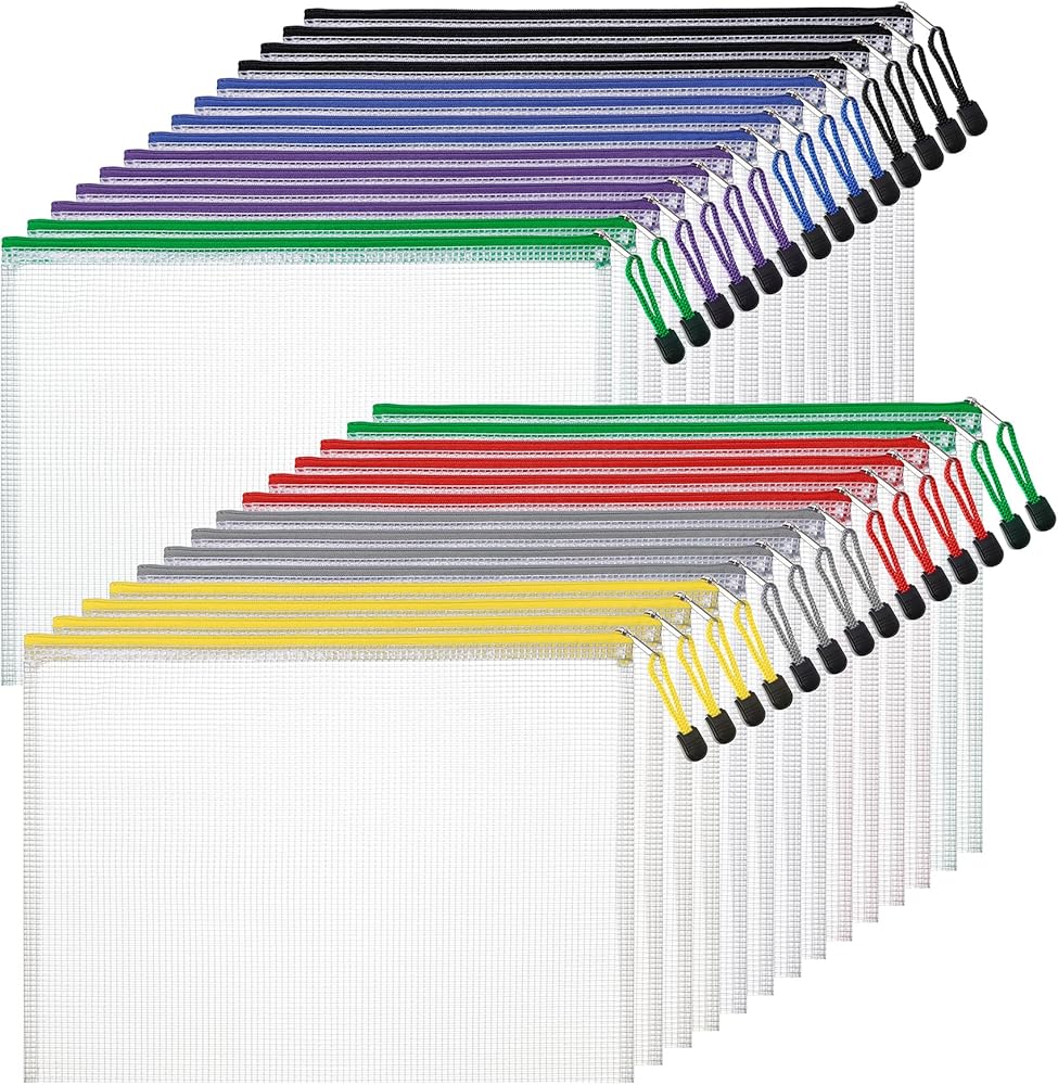 28 قطعة من أكياس سحاب شبكية من Antner لتنظيم التخزين، جيوب مستندات بلاستيكية بحجم Letter/A4، حقائب ملفات للسفر واللوازم المكتبية المدرسية، حقائب ألغاز شبكية كبيرة لتخزين ألعاب الطاولة