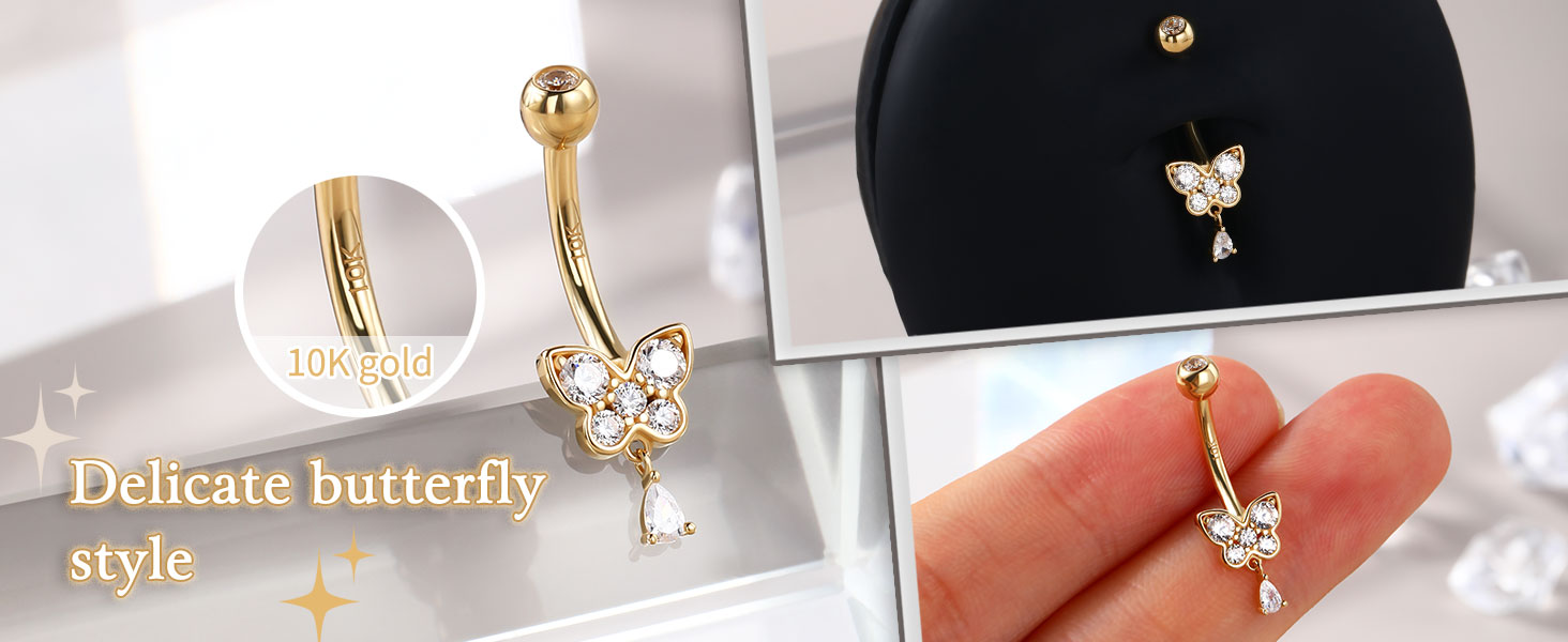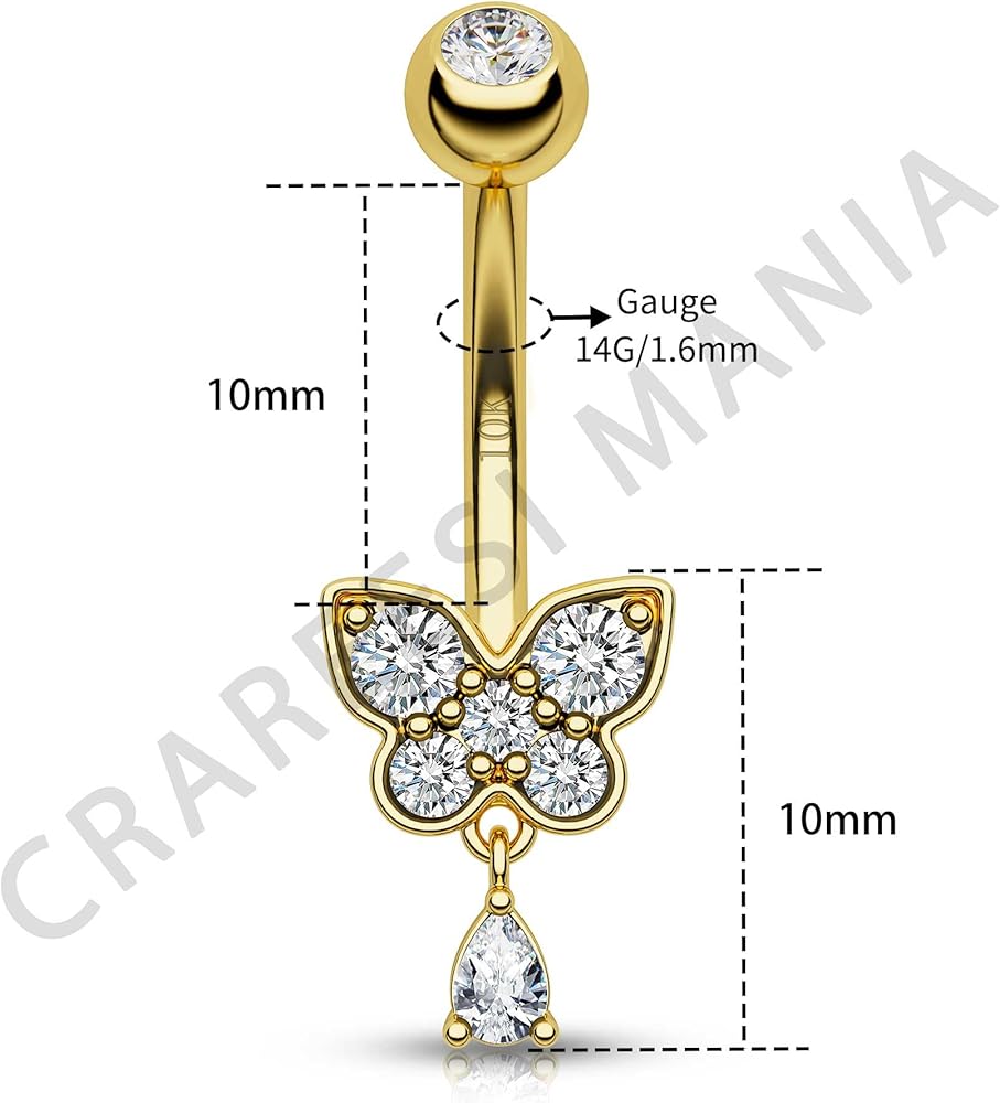 【خالية من الذهب عيار 10 قيراط والنيكل】: حلقة ثقب السرة مصنوعة من الذهب الصلب عيار 10 قيراط، وهي أكثر المواد أمانًا لجميع أنواع البشرة. لا يسبب الحساسية وخالي من النيكل، ومناسب للاستخدام اليومي. 0 ضرر على بشرتك، حتى الثقب الجديد يمكن استخدامه.
