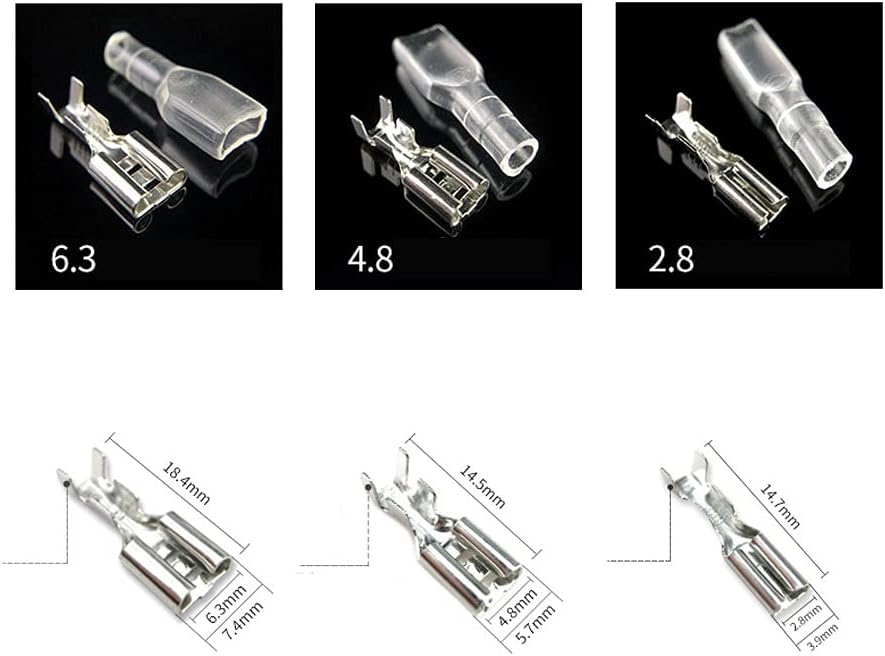 • Size: 4.8mm Spade Connectors Terminal ; Inner diameter: 4.8mm ; Thickness: 0.5mm ; Wire length: 20cm / 7.87inch.