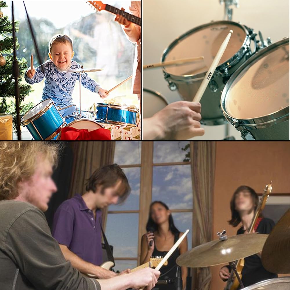 ✔ عصي طبل خفيفة الوزن 7a مناسبة للمبتدئين والأطفال الذين يحبون الضوء والمعصم الصغير.