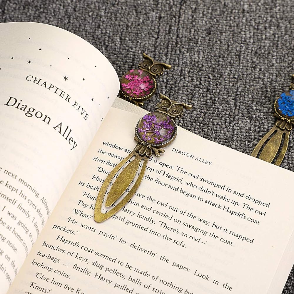 مجموعة OWNMY مكونة من 6 مشابك معدنية للإشارة المرجعية، ومشابك مسطرة لإشارة البومة العتيقة، وعلامات كتاب الزهرة البرونزية مع زهرة مجففة عتيقة، وعلامة صفحة كتاب مرجعية معدنية أنيقة للطلاب، والأطفال، والمعلم، ونادي الكتب