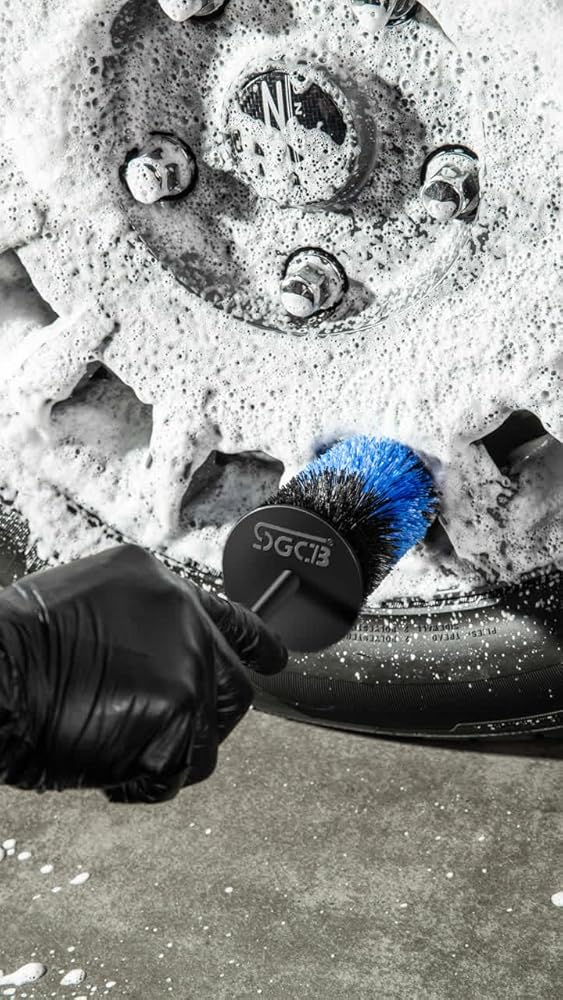فرشاة تنظيف إطارات السيارات من SGCB، ملحقات تفصيلية للسيارة لعجلة التنظيف، أداة تنظيف العجلات سهلة الوصول، حجم كبير تلقائي ومحرك أزرق لمقاس L XL (كبير)