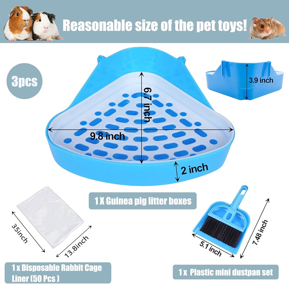 【3 قطع بدلة عملية مثالية】 أحدث مدرب نونية على شكل خنزير غينيا للأرنب الغيني لديه ترقية جديدة، تتضمن 1 × صندوق فضلات مثلث لخنزير غينيا، 1 × بطانة قفص أرنب للاستعمال مرة واحدة (50 قطعة)، 1 × مجموعة مجرفة بلاستيكية صغيرة. تلبية احتياجات الأكل والشرب واللعب اليومية لحيوانك الأليف.