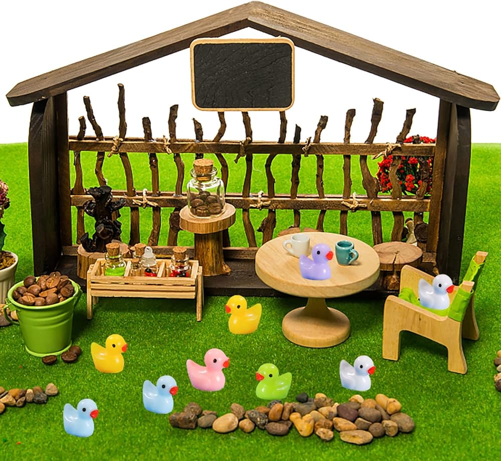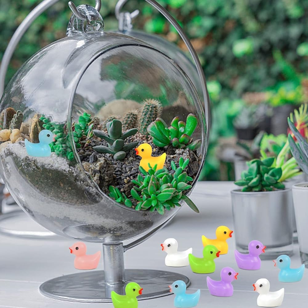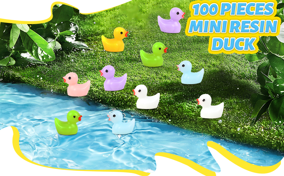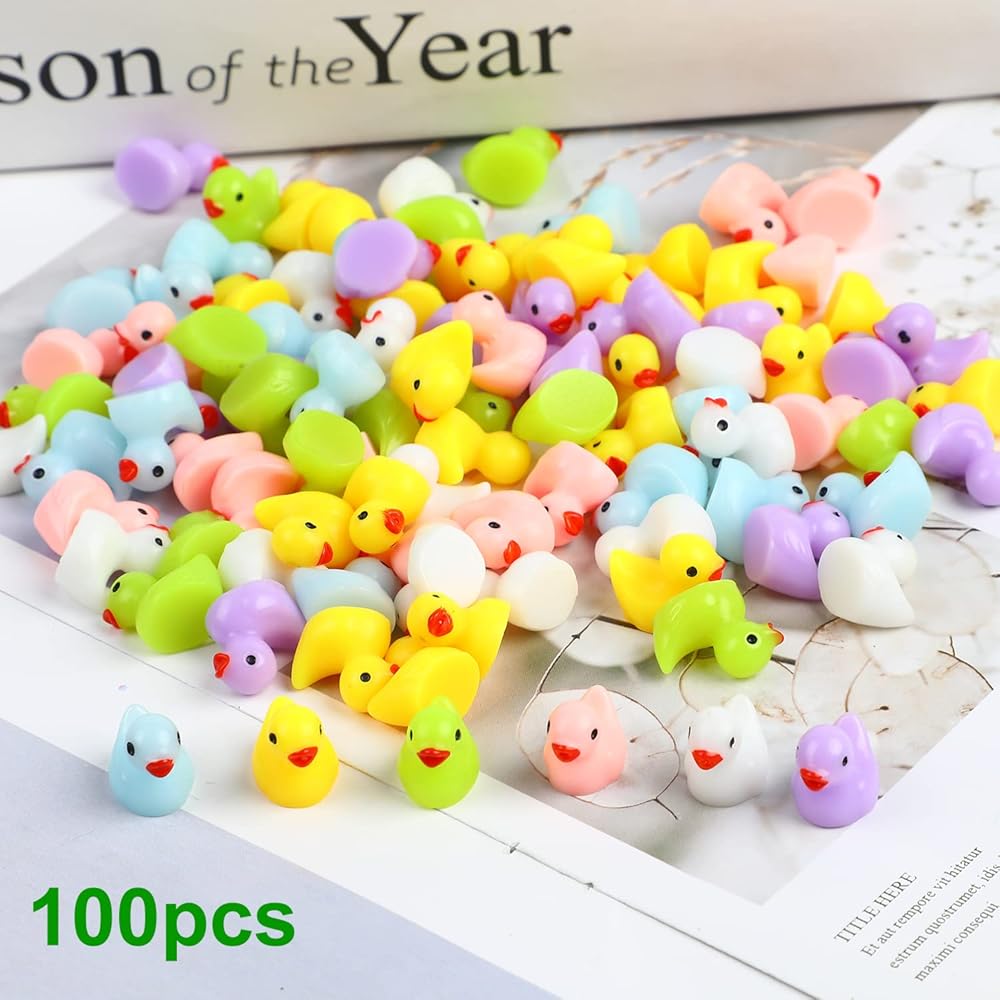 100 قطعة من البط الراتنج الصغير الملون من DERAYEE، تماثيل صغيرة مصغرة، حديقة خرافية صغيرة، منظر طبيعي لحوض السمك، بيت الدمى، زينة نباتات بوعاء للحرف اليدوية لديكورات المنزل والمكتب