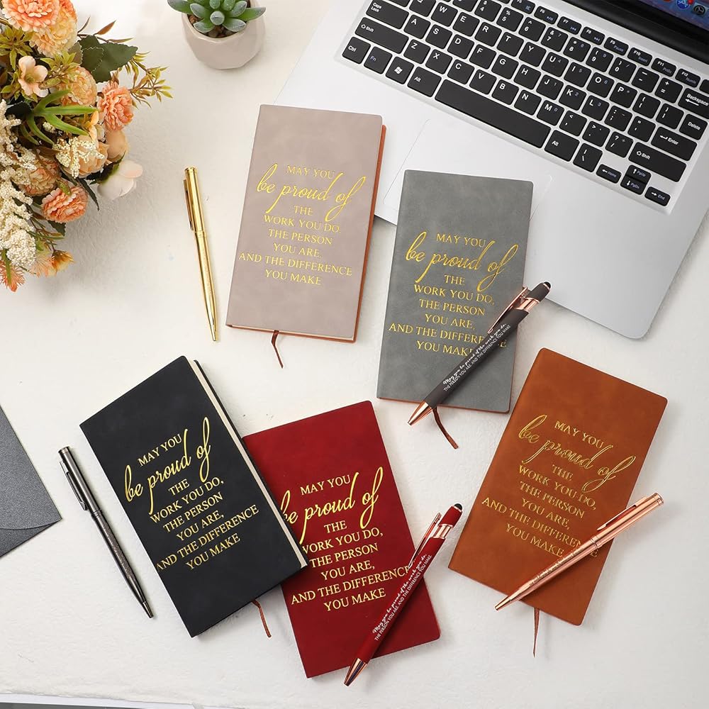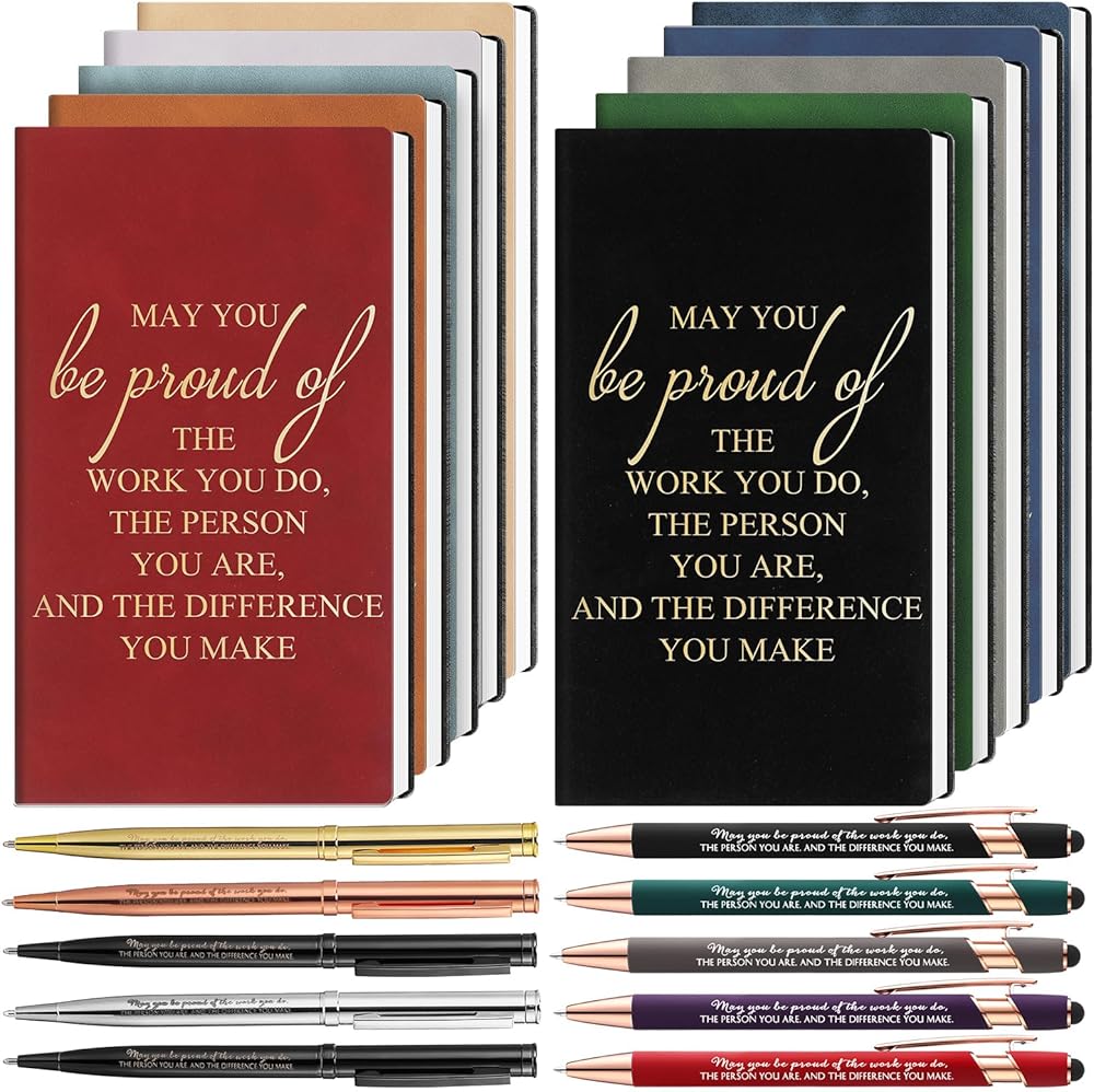 ما ستحصل عليه: سوف تحصل على 10 قطع من دفاتر الملاحظات الجلدية التقديرية في 10 تصميمات، و5 قطع من أقلام الحبر الجاف المعدنية في 5 تصميمات، و5 قطع من أقلام الحبر الجاف مع قلم في 5 تصميمات؛ يحتوي كل دفتر على 100 ورقة و200 صفحة؛ كمية وتصميم كافية لتلبية احتياجاتك اليومية في الاستخدام والمشاركة