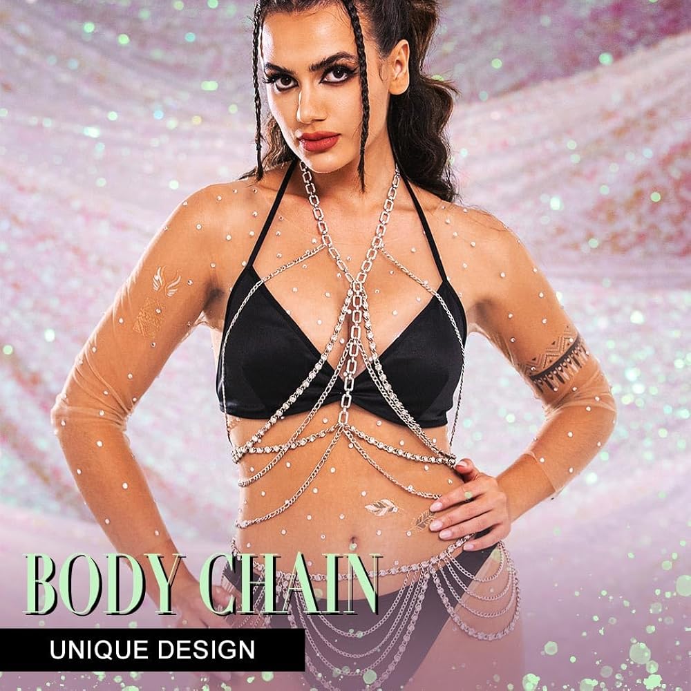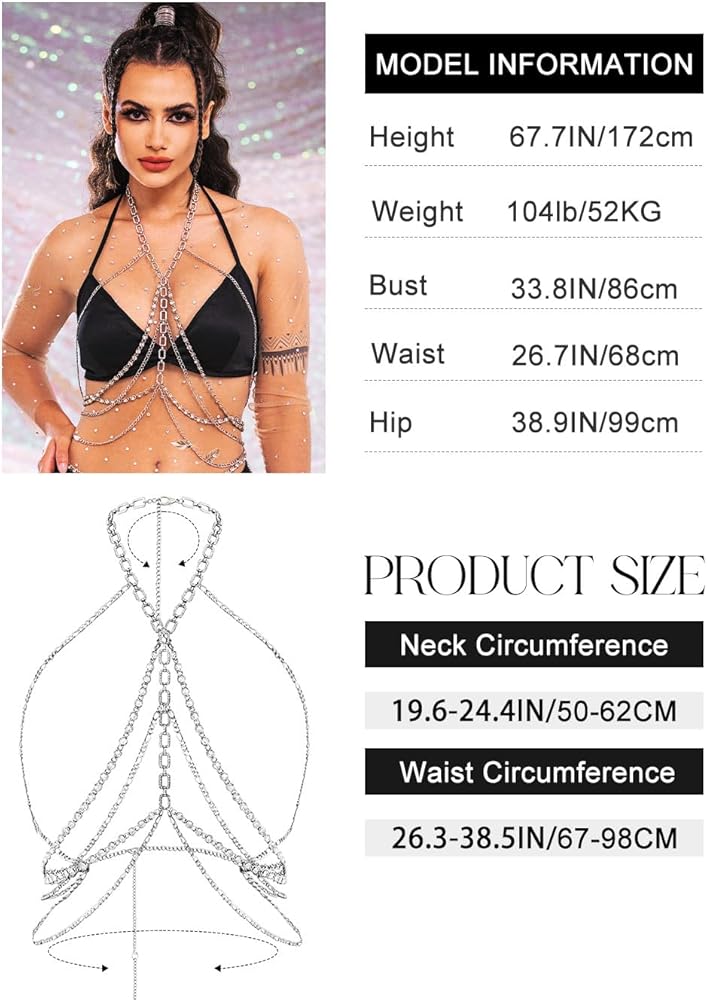 سلسلة الجسم المصنوعة من حجر الراين مثالية لحفلات الشاطئ الصيفية والنوادي الليلية والحفلات الراقصة وأي مناسبات خاصة أخرى. يمكن أن تجعلك مركزًا وتحصل على المزيد من الإطراء.
