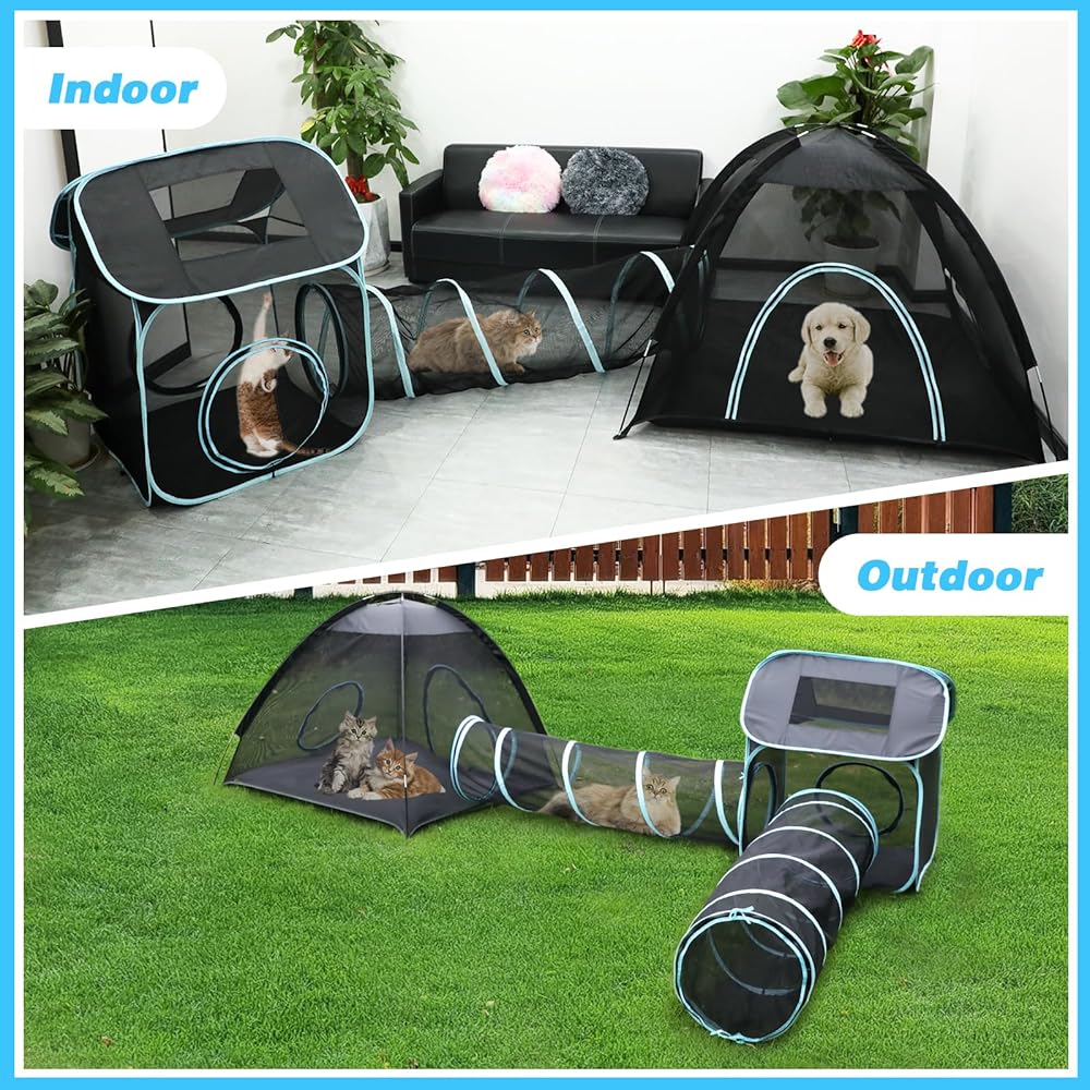 نفق القطط الخارجي من Rypet 4 في 1 حاوية خارجية للقطط للقطط الداخلية/الخارجية، خيام القطط للخارج، بما في ذلك خيمتان ونفقان للقطط والحيوانات الأليفة الأخرى