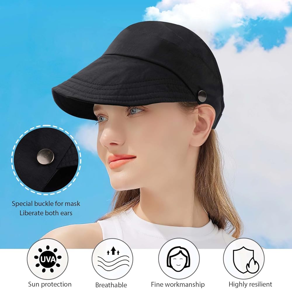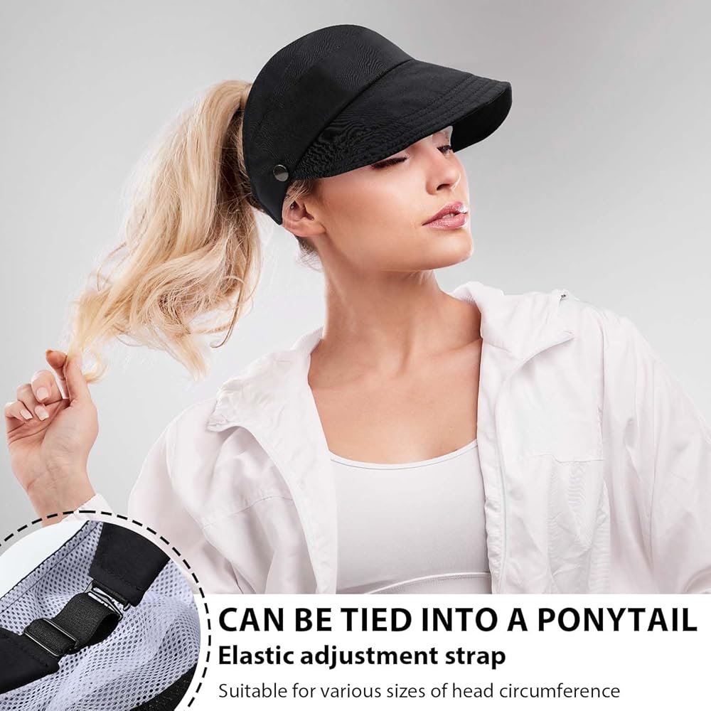 • 【قبعة حماية من الشمس قابلة للتعديل】 يتميز هذا الواقي بتصميم قابل للتعديل ويمكن تعديله وفقًا لحجم رأسك. يناسب معظم الأشخاص ويتناسب بشكل مريح مع ذيل الحصان النسائي، مما يجعله مريحًا ورائعًا.