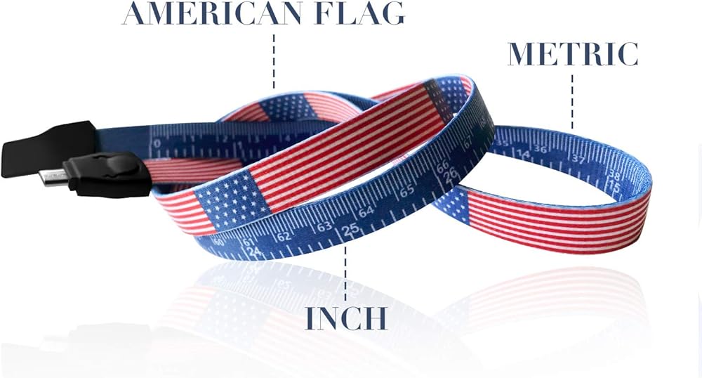 ABCOOL نجوم وخطوط شريط قياس كابل USB حبل شارة، EDC متعدد الوظائف لشحن الهاتف متري حاكم إمبراطوري استبدال حزام معرف الرقبة مع العلم الأمريكي لمكتب ورشة العمل والمدرسة النباتية