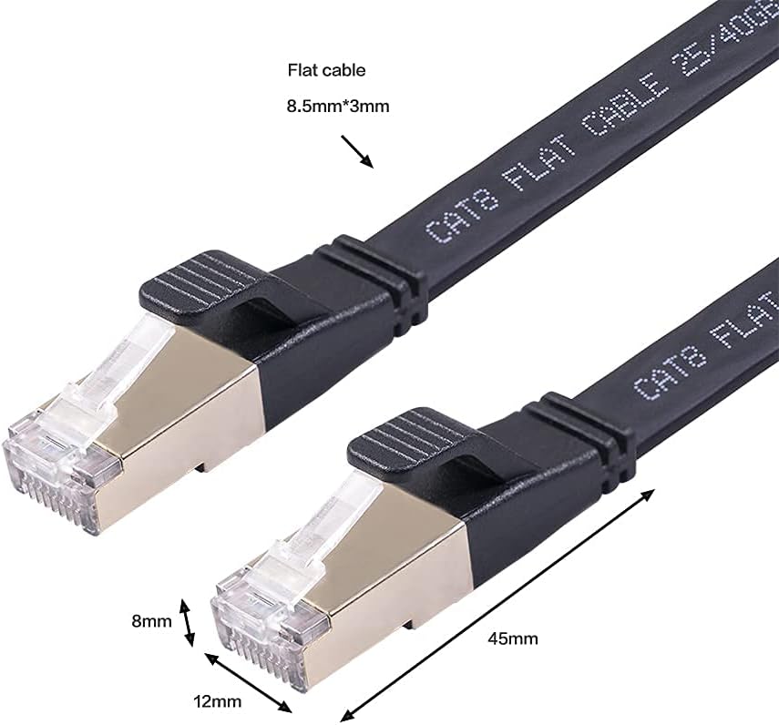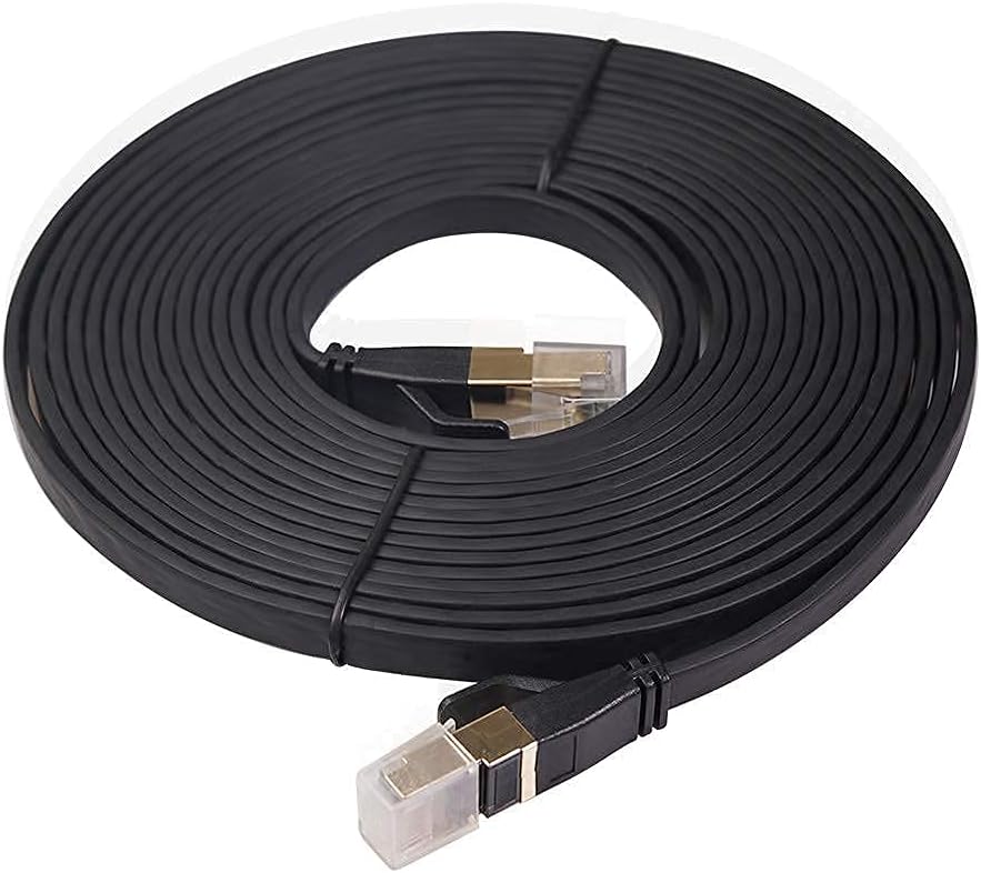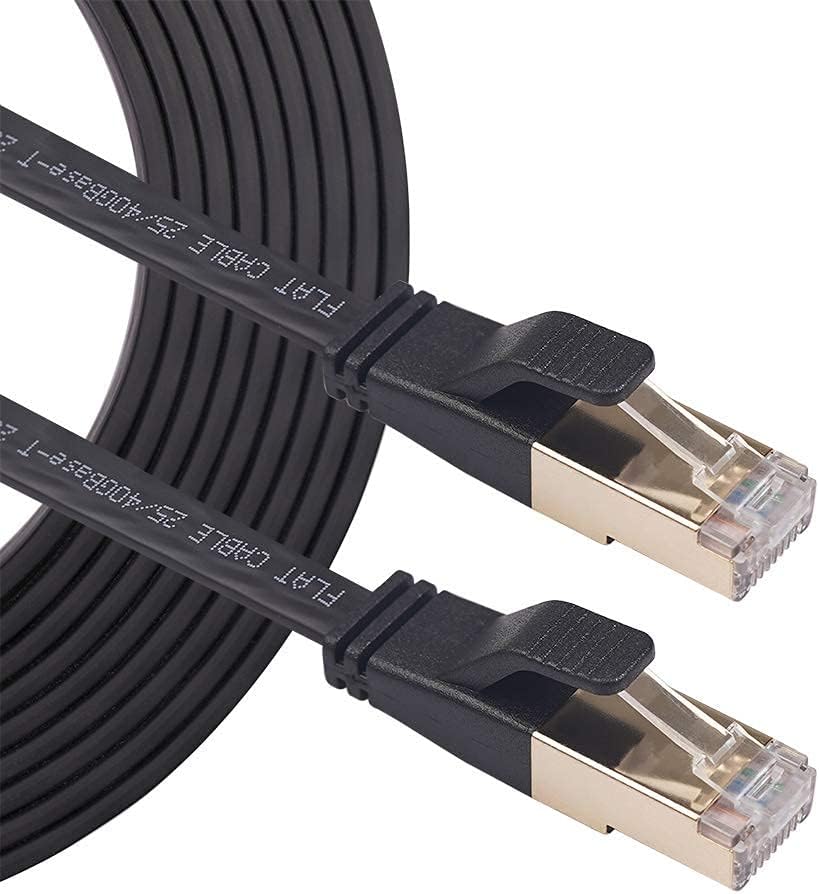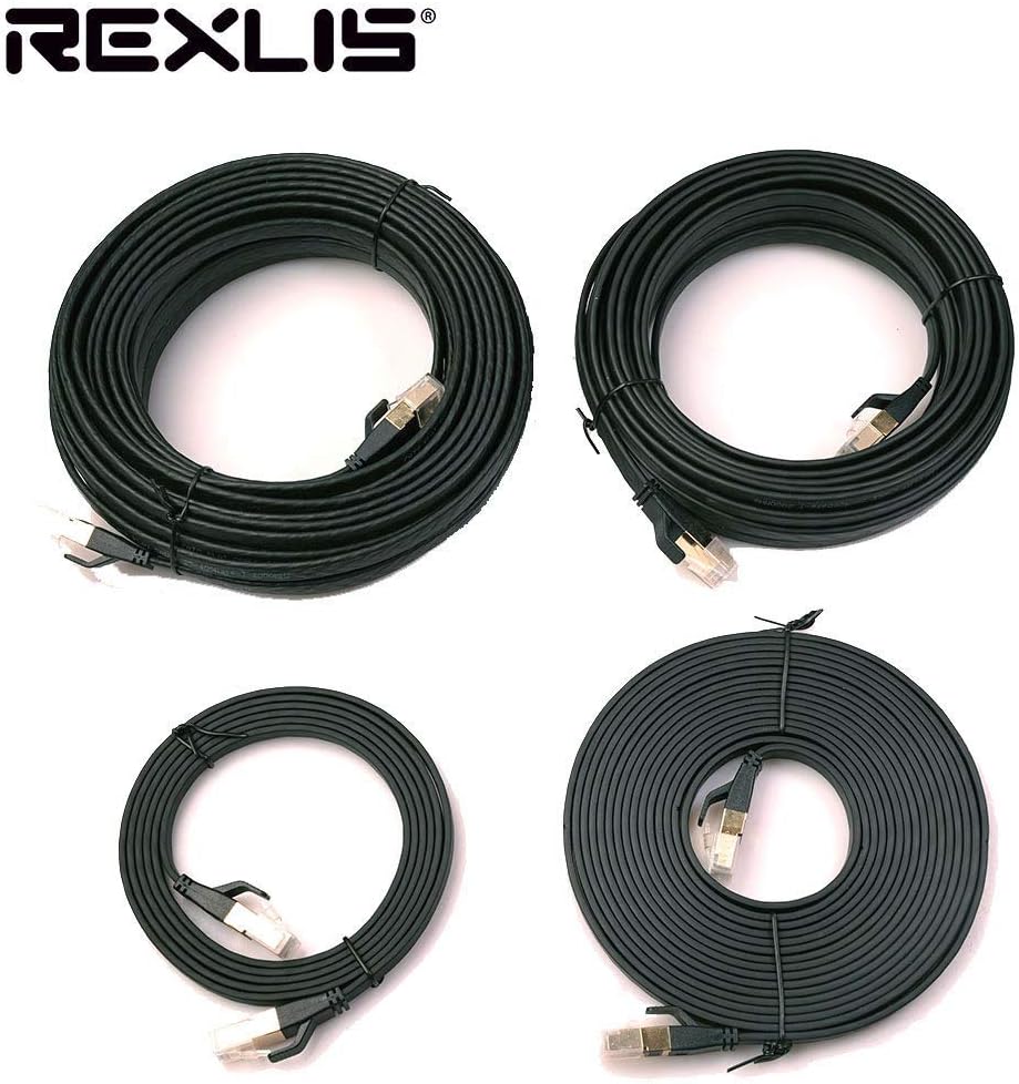 كابل شبكة إيثرنت REXUS Flat Cat 8 بطول 16 قدمًا، سرعة عالية 40 جيجابت في الثانية 2000 ميجا هرتز SFTP LAN سلك كابل تصحيح الإنترنت مع موصل مطلي بالذهب RJ45 للخادم وجهاز التوجيه والمودم والكمبيوتر الشخصي والتبديل (C8F50)